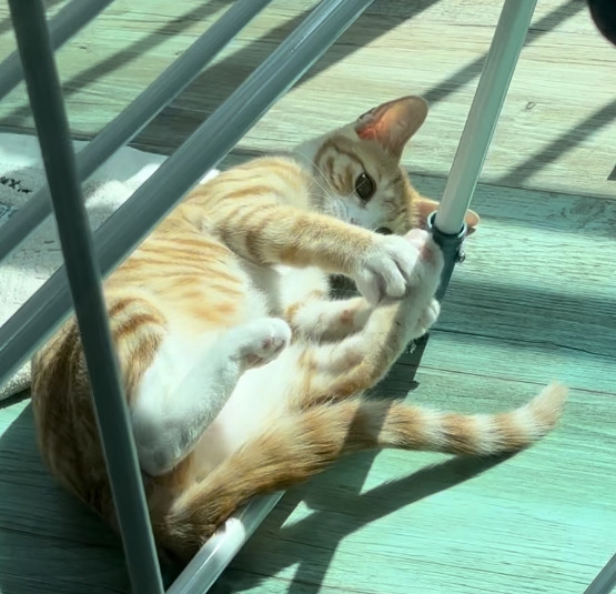 점심때 집에서 간단히 운동을 하는 편인데 오늘도 역시나 인내심을 좀 더 연장시켜줄 음악이 필요했다. 바짝 운동을 시작하는데 고양이가 나의 묶은 머리를 톡톡 친다. (우리 고양이는 동그란 것을 참 좋아한다.)