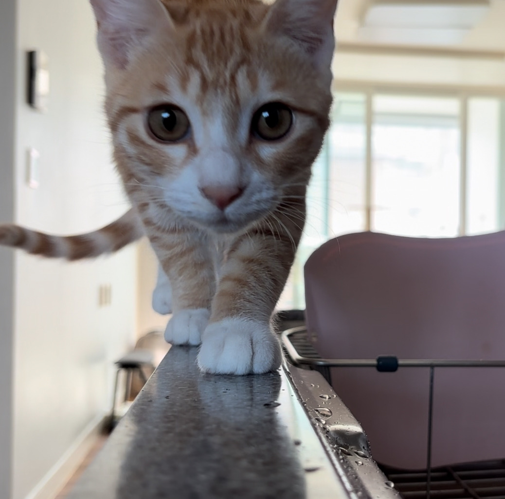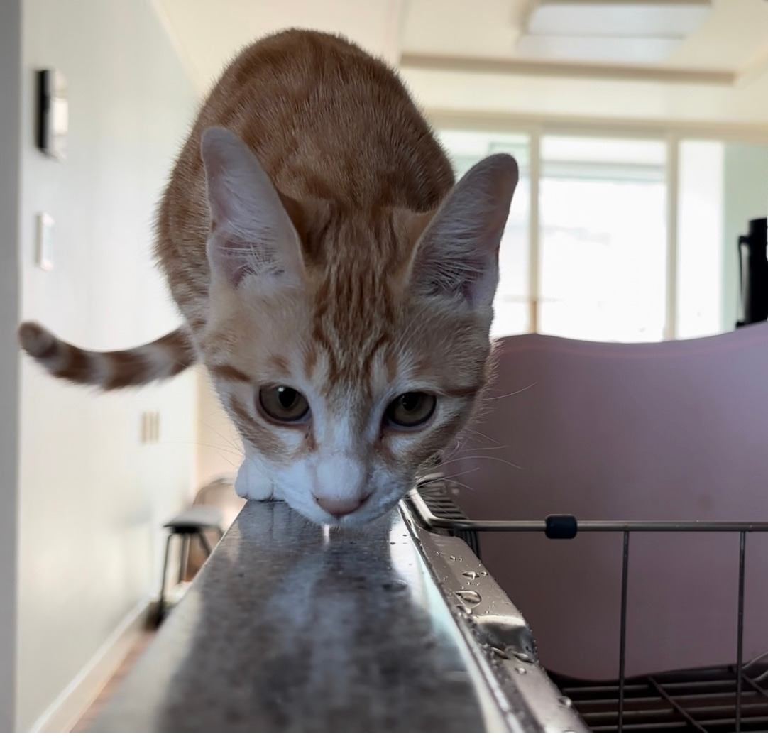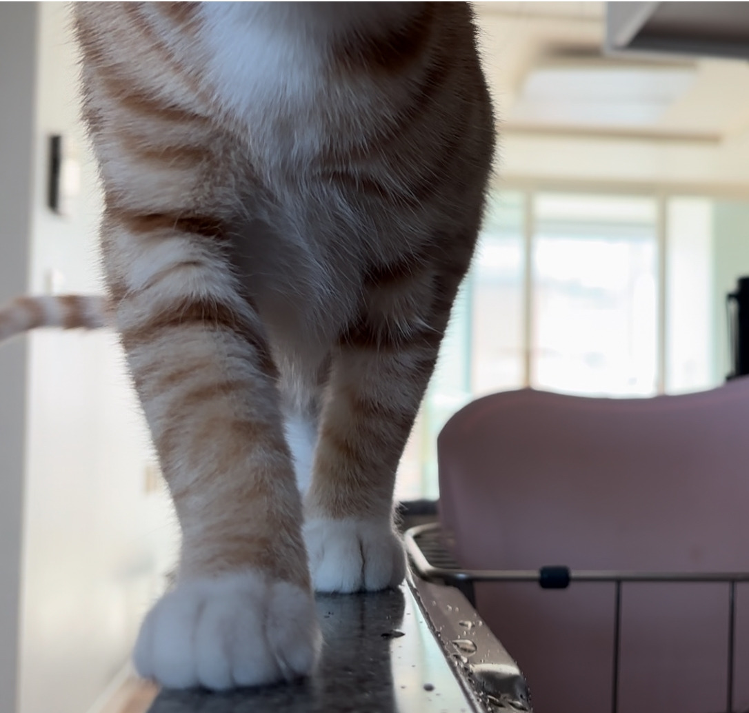 요새는 점프 실력이 늘어 위험한 공간에 올라가기도 한다. 그럴땐 한손으론 고양이의 가슴팍을 잡고, 한 손으론 엉덩이를 안정감있게 받쳐 고양이를 바닥에 내려둔다.