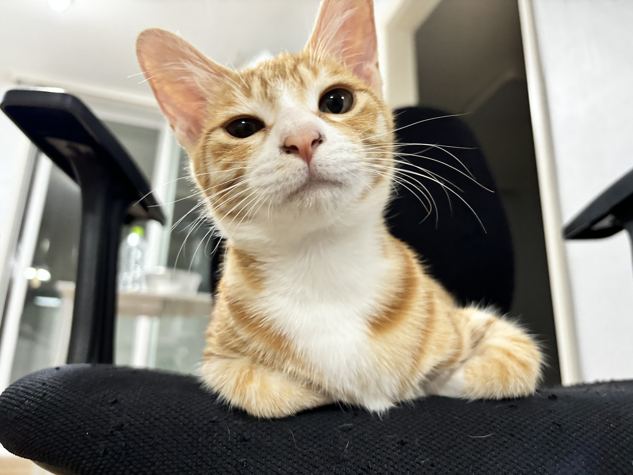 폭닥한 고양이 이마가 내 이마를 받아주었다.
