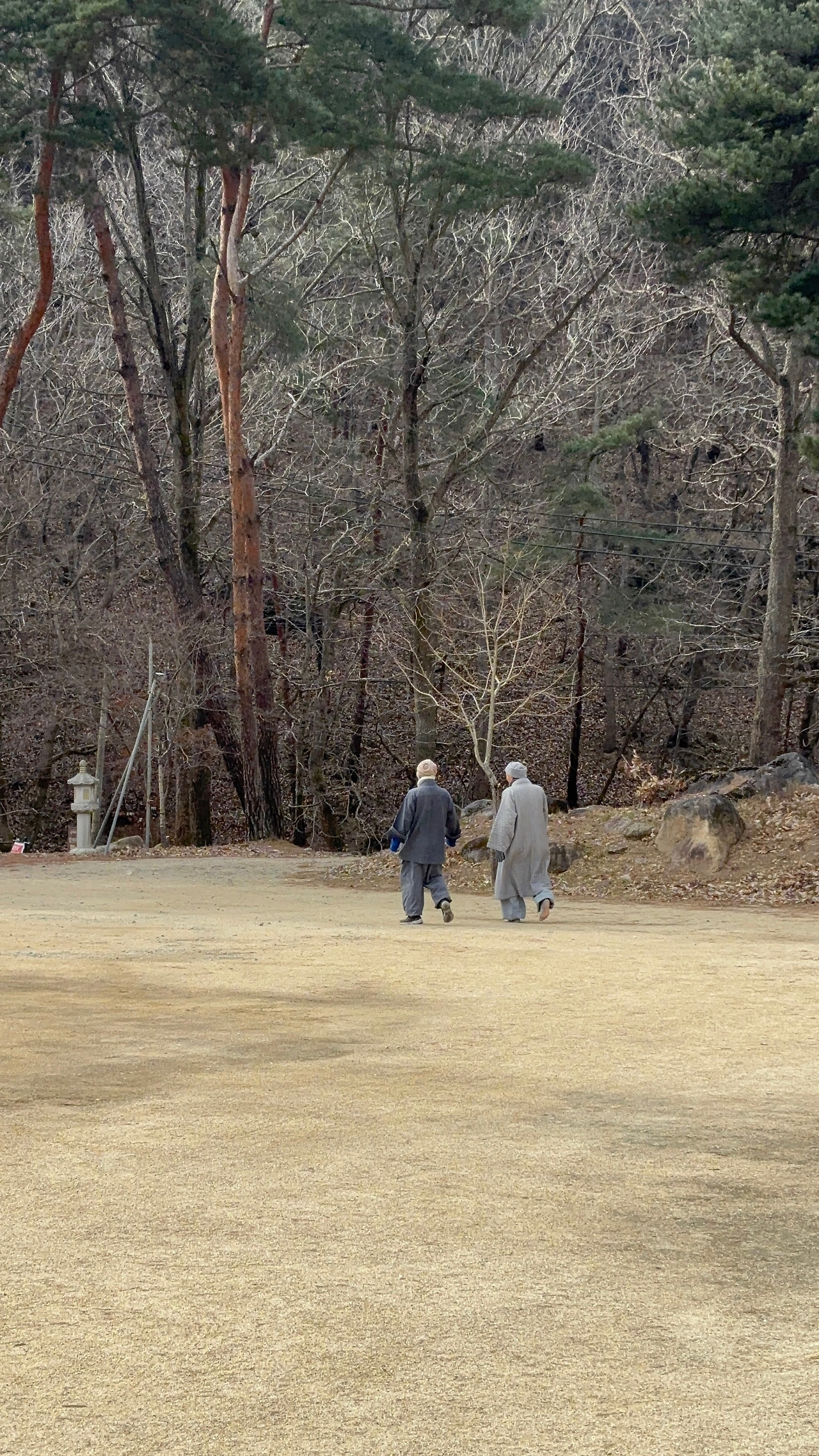 스님은 산책을 마치고 돌아가는 길이라 하셨다. 스님은 우리에게 고맙다며 군고구마를 안겨주시고 절로 들어가셨다.