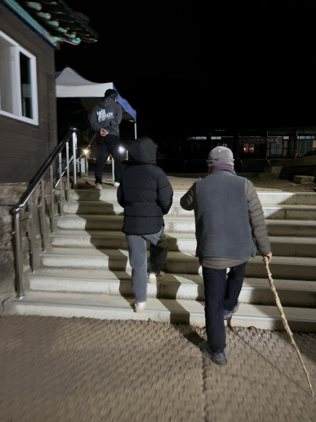 그 느낌이 좋아서 우리는 다음날 새벽에도 예불하러 나갔다. 그러기 위해서는 새벽 4시 50분에 일어났는데, 칠흑같은 어둠속에서 마음만은 빛났다. 생각보다 춥지 않았다. 상쾌했다. 기뻤다. 이 깜깜함 속에 우리가 예불을 드리러 간단 생각에 마치 수양자가 된 것 같았다.