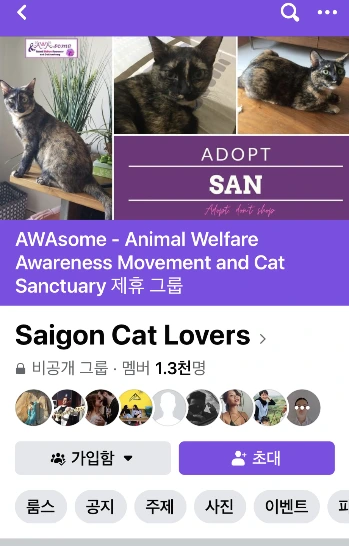 사이공 고양이 입양 페이스북 사이트.