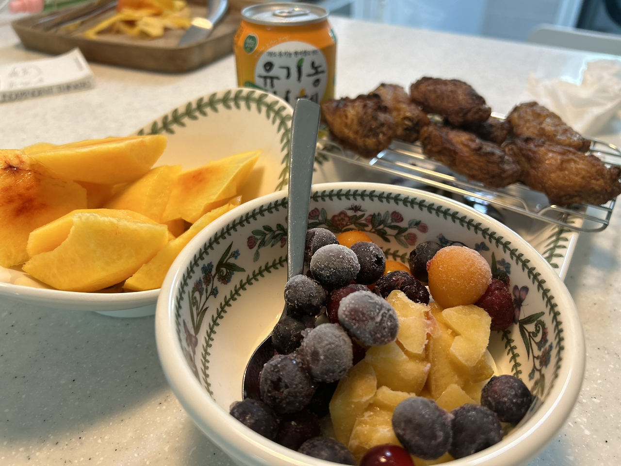 공간이 많아진 냉장고는 한눈에 무엇이 있는지 훤히 들여다 보인다. 주로 야채와 과일이 많아진 우리 집 냉장고. 보는 것만으로도 기분이 상쾌하다. 식습관이 우연히 바뀌긴 했지만 아이도 함께 잘 따라와 준다. 아이도 나도 면역력이 좀 더 생긴 것 같다. 과자가 항상 있던 곳엔 시리얼이 들어가 있고 무언가 더 먹고 싶고 속이 허전하면 어차피 키도 커야 하니 우유와 시리얼 혹은 냉동 베리와 섞은 요플레를 먹인다.