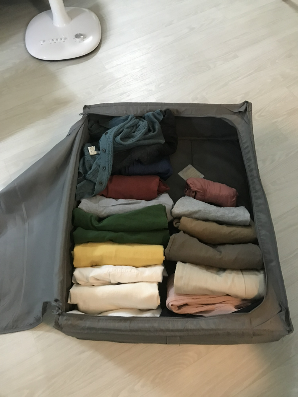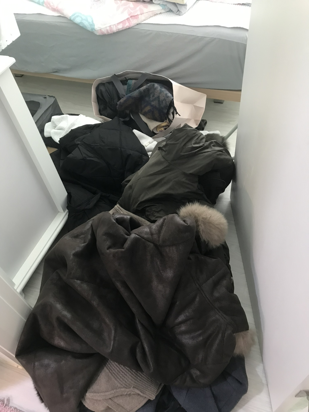 대망의 여름옷을 집어넣고 겨울옷을 꺼내는 작업을 두 팔 걷고 시작했다. 정리를 하기 전 항상 기억해야 할 것은 '버릴 것'을 찾는 게 아니라 '남길 것'을 찾고 나머진 다 버리면 된다. '남길 패딩, 남길티와 바지, 남길신발'을 찾기 시작했다. 여름옷에 비해 겨울옷은 두껍고 무거운 편이라 옷장안이 금세 꽉 차버렸다. 아이옷은 더 이상 사이즈가 맞지 않아 버릴 옷이 제법 많이 나왔다. 두 시간 반 정도 쉬지 않고 몸을 움직였다. 헌 옷수납함에 한 무더기를 가져다 넣고 청소기를 밀고 코코를 목욕시켰다.