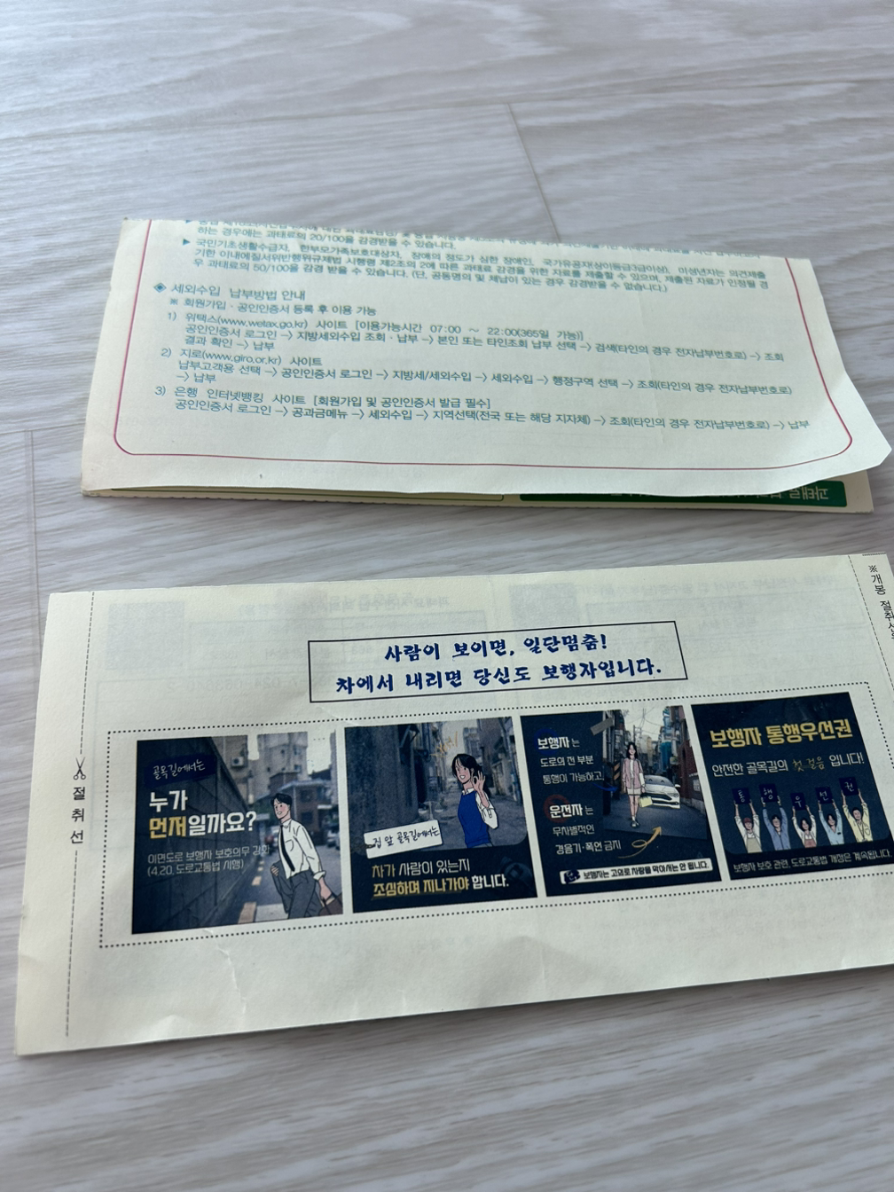 하나는 구청에, 하나는 경찰서에 바로 과태료를 입금했다.