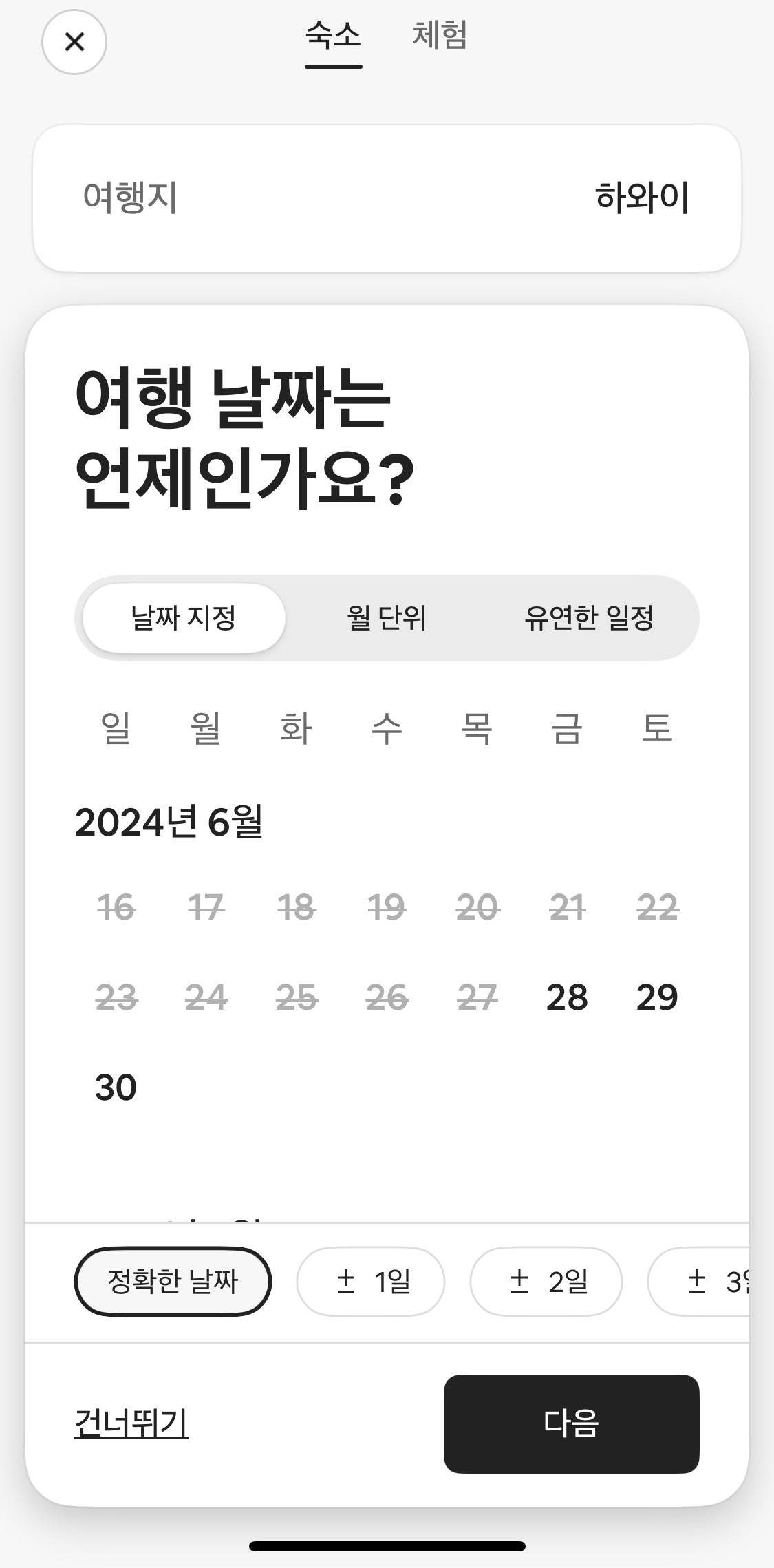다운로드한 앱에서 숙소 기간을 선택할 때 위에 '날짜 지정, 월단위, 유연한 일정' 옵션이 달력 위로 보였다. 노트북으로는 보이지 않았다. 노트북으로 기간을 선택할 때는 월단위가 아니더라도 모든 선택이 가능했다. 하지만 앱에서는 롤렛 모양의 바퀴가 보이면서 기간을 한 달 단위 이상 선택 하게끔 되어 있었고, 가격은 월단위로 선택했을 때 지정한 날짜보다 60만 원에서 100만 원 정도 차이를 보였다. 크게 150까지도 차이가 났다. 이유는 주차비용 때문인 듯했다. 또 호스트에 따라 달랐다. 정확하지는 않지만 여하튼 가격이 다운되었다. 차라리 월단위로 설정하고 입국과 출국 날짜를 마음대로 설정하면 체크인 시간 오후 4시까지 기다리지 않고 들어갈수 있어 여유로운 일정을 소화할수 있다.