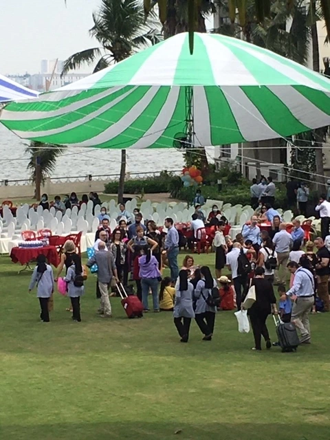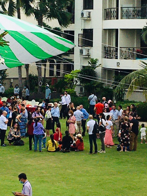 그 들은 유럽 프랑스와 이태리 등에서 들어온 특별 입국자들이었다. 11월에 베트남에서 베트남 아이를 입양받기 위해 유럽에서 들어오는 가족들을 특별 입국 시켰다. 보름 동안 베트남에 머물 수 있는 허가가 떨어졌다. 아파트 단지에 단체 50가구가 (부부이니 100명정도) 머물기로 했고 스탠딩 무대와 파란 줄무늬 천막은 입양가족들을 위한 행사 준비였다.