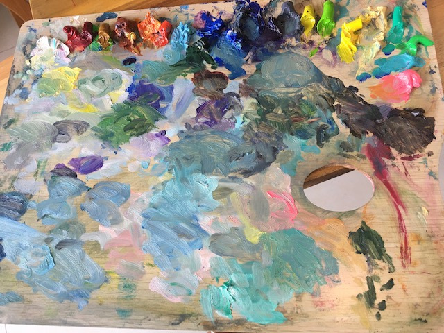 과잉된 아드레날린이 핏줄을 타고 손끝에서부터 머리 꽁지까지 혈관을 타고 쭉쭉 퍼져 나간다. 카피하고자 하는 그림을 보고 팔레트에 색깔별 오일 물감을 듬뿍듬뿍 짠다. 바탕과 밑바탕 작업을 하는 날이기 때문에 물감이 많이 필요한 날이다. 코발트블루, 네이비블루. 딥블루, 스카이 블루 등 블루가 많이 필요한 그림이다. 블루에도 이렇게 종류가 많다는 것을 그림 그리기를 배우고 나서부터 알게 되었다. 블루는 보면 볼수록 블랙홀처럼 빠져 드는 색이다. 흥분이 된다. 색은 늘 나를 흥분시키고 자극시킨다. 마치 어린 강아지가 종일 어두운 방 안에서 주인을 기다리다, 마침 저녁에서야 돌아오는 주인을 보고 너무 흥분한 나머지 오줌도 찔끔 지리고, 뒤 꽁지 꼬리를 요리저리 요란하게 흔들다 못해 뒤로 벌러덩 뒤집어져 날 가져주세요 포즈를 취하는, 그때의 그 강아지 느낌과 매우 흡사하다고 할 수 있다.