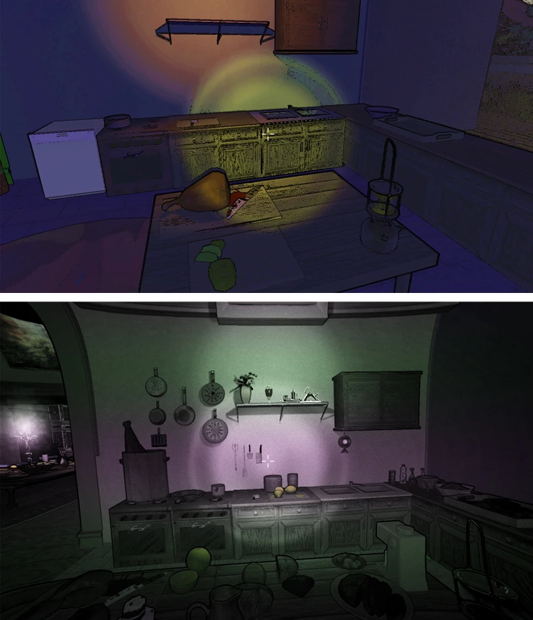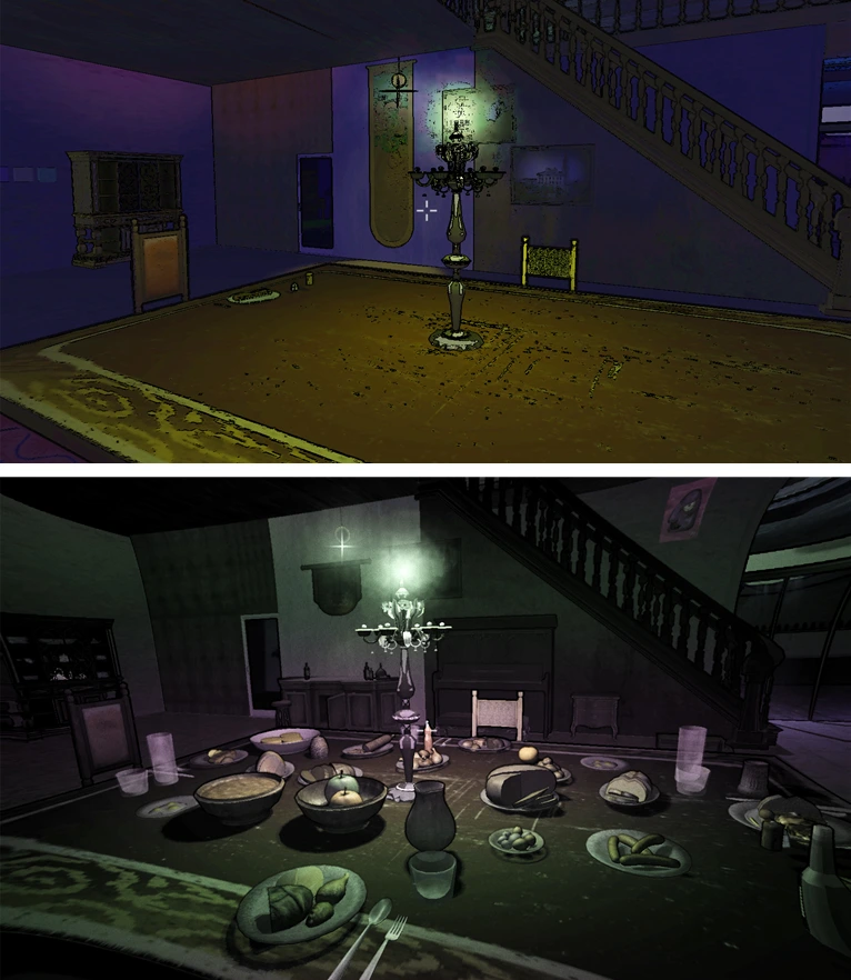 즉, 힌트는 과거에 몰려있고, 사물과의 인터랙션은 현재에서만 할 수 있기 때문에, 플레이어는 과거와 현재를 왔다 갔다 하면서 퍼즐을 풀어야 한다. 거기다 과거로 가면 귀신이 쫓아온다.