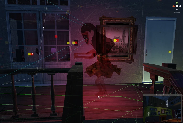 플레이어가 긴박감을 느낄 수 있도록 이 귀신에게 주인공을 추적하는 AI를 달았다. 주인공을 발견하면 무섭게 달려온다. 그런데 기본 AI 프로그램이 개똑똑한 것이다. 아무래도 이 귀신이 내 남동생보다 더 똑똑하지 싶다.