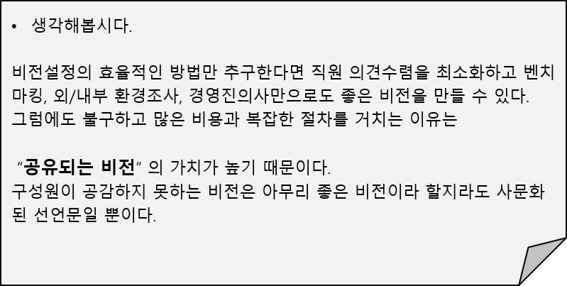 마지막으로 경영진에게 최종결제를 받음으로써 비전(안)이 비로소 확정이 되는 것이다