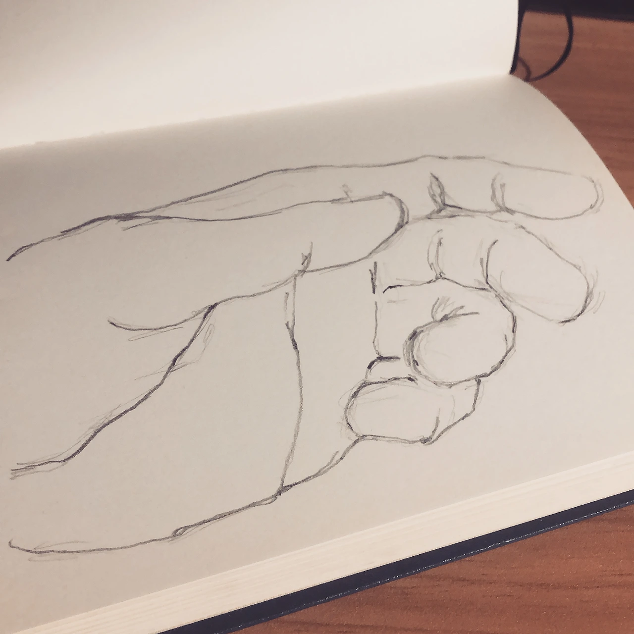 무언가 그리고 싶은 게 떠오르지 않을 땐 내 눈앞에 보이는 게 낫겠다 싶어 왼손을 보면서 슥삭슥삭 샤프선을 내질렀다.