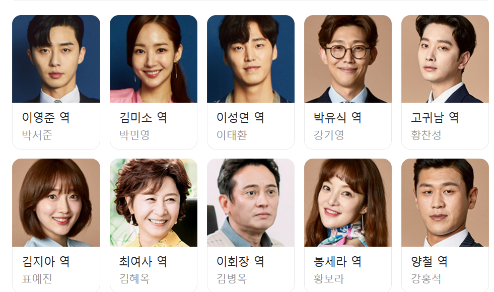 등장인물: 김미소(김비서: 박민영), 이영준(이성현: 박서준), 이성연(이영준: 이태환)