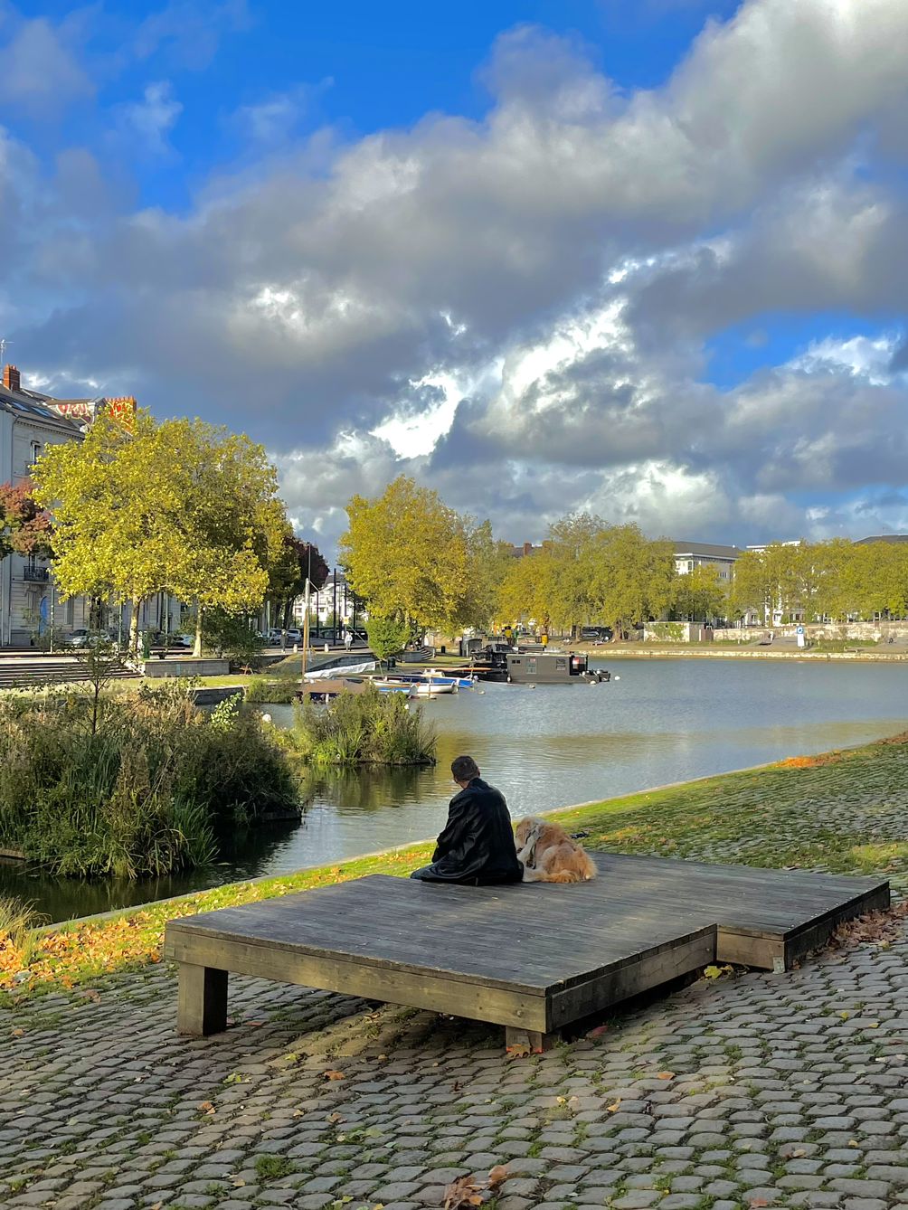 약 2시간 30분이 지나고 낭트역에 도착했다. 프랑스의 서쪽으로 달려왔을 뿐인데 훨씬 썰렁해진 기온에 날씨의 과학을 몸소 체감하며 숙소로 향한다. 숙소에 거의 다 와갈 무렵 얇은 빗줄기가 얼굴을 훑기 시작했다. 예전에 SNS를 돌아다니다 봤던 프랑스 인들은 비가 와도 우산을 쓰지 않는다는 사실인지 거짓인지 모를 글이 떠오른다. 프랑스에 왔으니 나도 그들을 따르겠다는, 사실은 우산을 꺼내기도, 쓰고 다니기도 귀찮아서 기억해 낸 합리화로 내리는 빗방울을 온몸으로 받아낸다. 다행히 비가 그리 세게 내리지는 않는다.