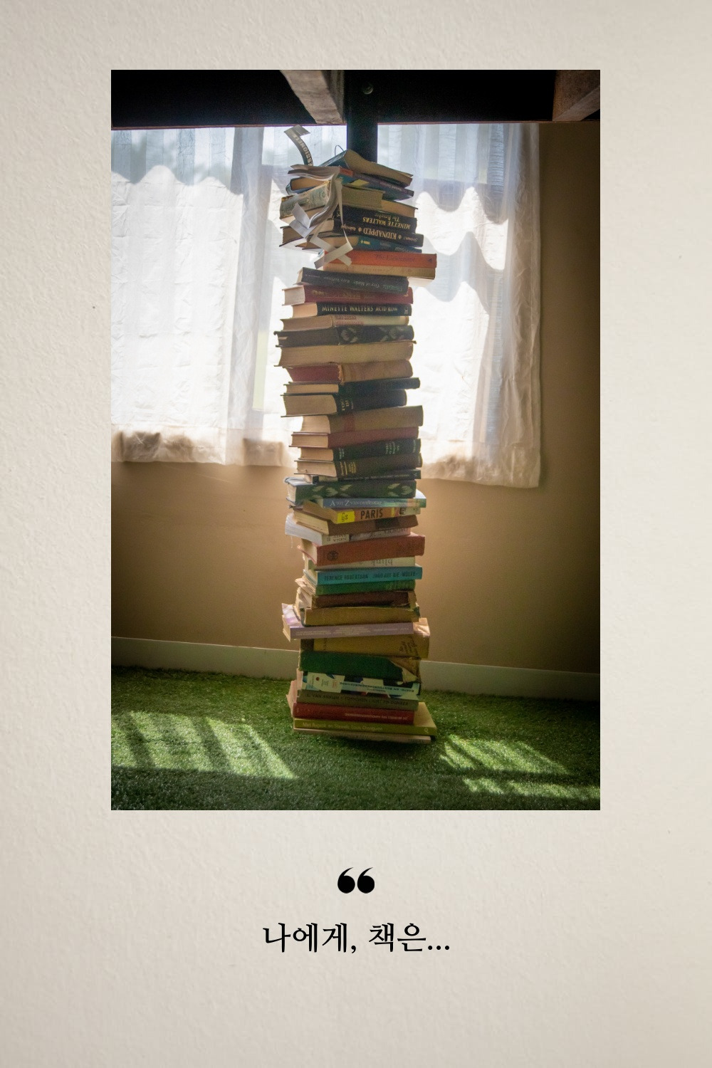 읽은 책은 거실 벽면 코너에 무심하게 툭툭 쌓아두며