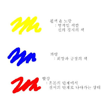샤갈이 사용한 색깔들의 상징적인 의미들을 적어보았다. [성서 메시지] 작품들을 감상할 때, 이 컬러들의 의미를 알고 있으면 전체적인 분위기를 쉽게 감지할 수 있고 또한 숨은 의도와 중요한 포인트를 잘 발견할 수 있다. 그의 그림에서는 사람의 머리에 뿔을 그려 넣은 것도 종종 등장하는데, 이는 그 사람에게 '신과 같은', '신격과 가까운' 상태가 되었음을 의미한다.