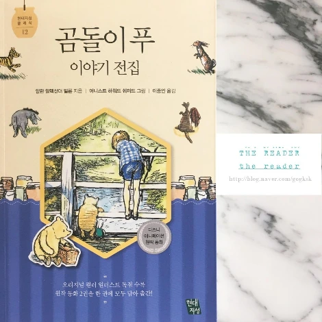 이 책 <곰돌이 푸 이야기 전집>은 알란 알렉산더 밀른이 쓴 두 권의 책 <위니 더 푸>와 <푸 코너에 있는 집>을 완역하여 합쳐놓은 책이다. 주요 등장인물은 너무도 유명한 곰돌이 푸, 피글렛, 이요르, 티거, 래빗, 아울, 캥거&루, 그리고 크리스토퍼 로빈이다. 이 책을 읽으며 저자가 아들과 같은 눈높이로 세상을 보며 아들과 대화를 나누었던 행복한 시간의 분위기를 느낄 수 있었다. 그맘때의 아이를 나도 키워보았기에, 그가 쓴 글들이 실제로 아이들이 하는 대화라는 것을 알 수 있었다. 단어의 의미를 엉뚱하게 유추하면서도 그것을 진지하게 믿고, 자기 그림자를 두려워하고, 무엇이든 의미를 부여하여 대단한 일로 만들고, 타인의 생각에 대해 자신의 입장에서 단정해버리는 것도 딱 어린아이들의 모습 그대로였다. 아이들의 순수함을 고스란히 담아놓은 대화를 읽어내려가며 나의 삶도 단순해지며 유쾌해지는 것 같았고, 작가의 상상력에 놀라는 순간도 많았으며, 각자의 개성을 존중하면서도 우정을 잃지 않고 서로를 돕고 연합하는 모습은 어른인 나에게 감동을 주기도 하였다.