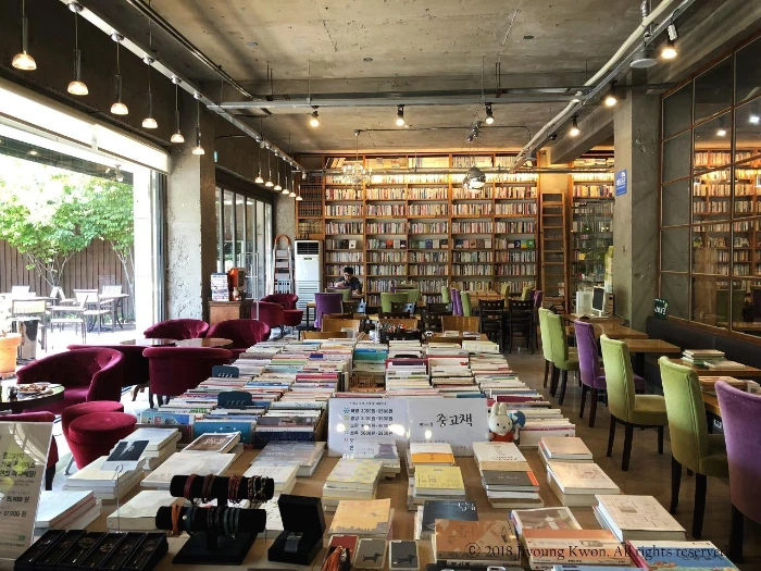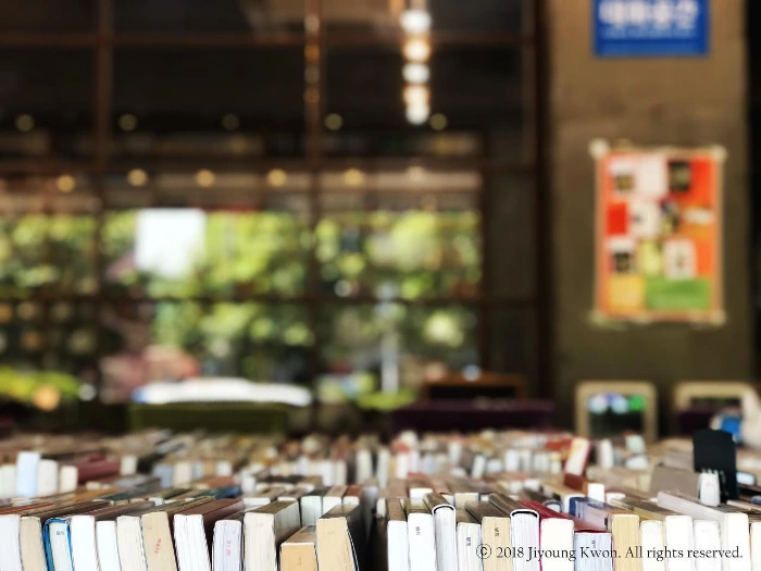 크로크 무슈와 아메리카노 한 잔을 주문하고 평대 위에 놓인 중고서적들을 둘러보았다. 벽마다 있는 높은 책장들에 꽂힌 책들은 모두 북카페를 이용하는 손님들이 자유롭게 꺼내볼 수 있는 책들이고, 음료 주문하는 곳 앞에 있는 평대와 근처의 낮은 책장들의 책들은 중고서적으로 저렴한 가격에 구입할 수 있다. 오늘은 헌책을 한 권 구입해야겠다고 생각하고 들른 터라 나와 오늘 인연이 닿을 책을 만나기 위해 부지런히 눈으로 책표지와 책등을 훑었다. 한동안 마음에 맞는 책을 찾지 못해 방황하는 내 옆으로 음료 주문을 받으시던 분이 다가오셨다.