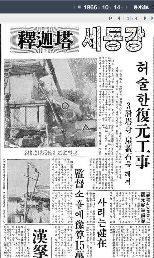 결국 파손된 부재를 임시로 접합하고, 해체된 부위만 다시 조립하는 정도에서 1966년 수리는 마무리됐다.