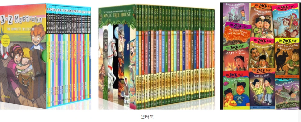 리더스는 아이들이 스스로 읽기를 돕기 위해 만든 책이다. 그래서 각각의 책은 단계가 표시가 되어있어 천천히 아이의 수준에 맞게 단계를 올릴 수 있다. 챕터북은 한 권의 책을 여러 개의 챕터로 나눠져 있는 책을 말한다. 대부분 엄마표 영어를 진행하는 사람들이 말하는 챕터북은 갱지로 된 3점대 챕터 북부터를 의미한다.