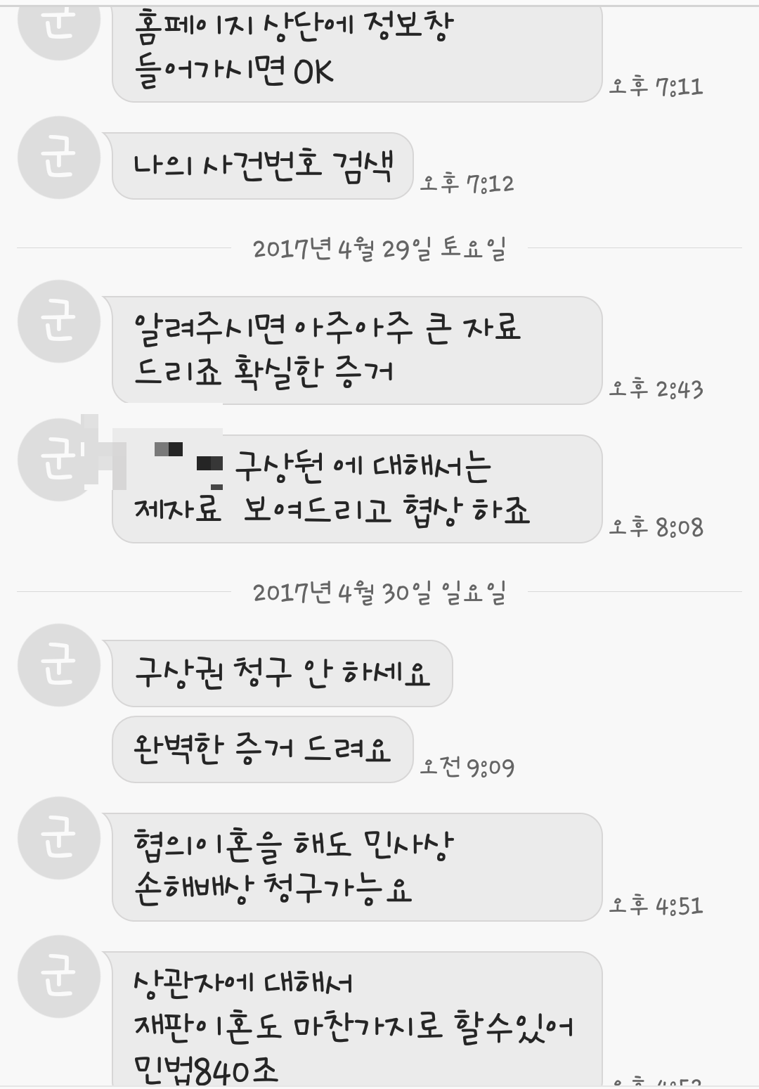나에게 상간녀소송의 사건번호를 알려달라 했으나, 알려주지 않았다.
