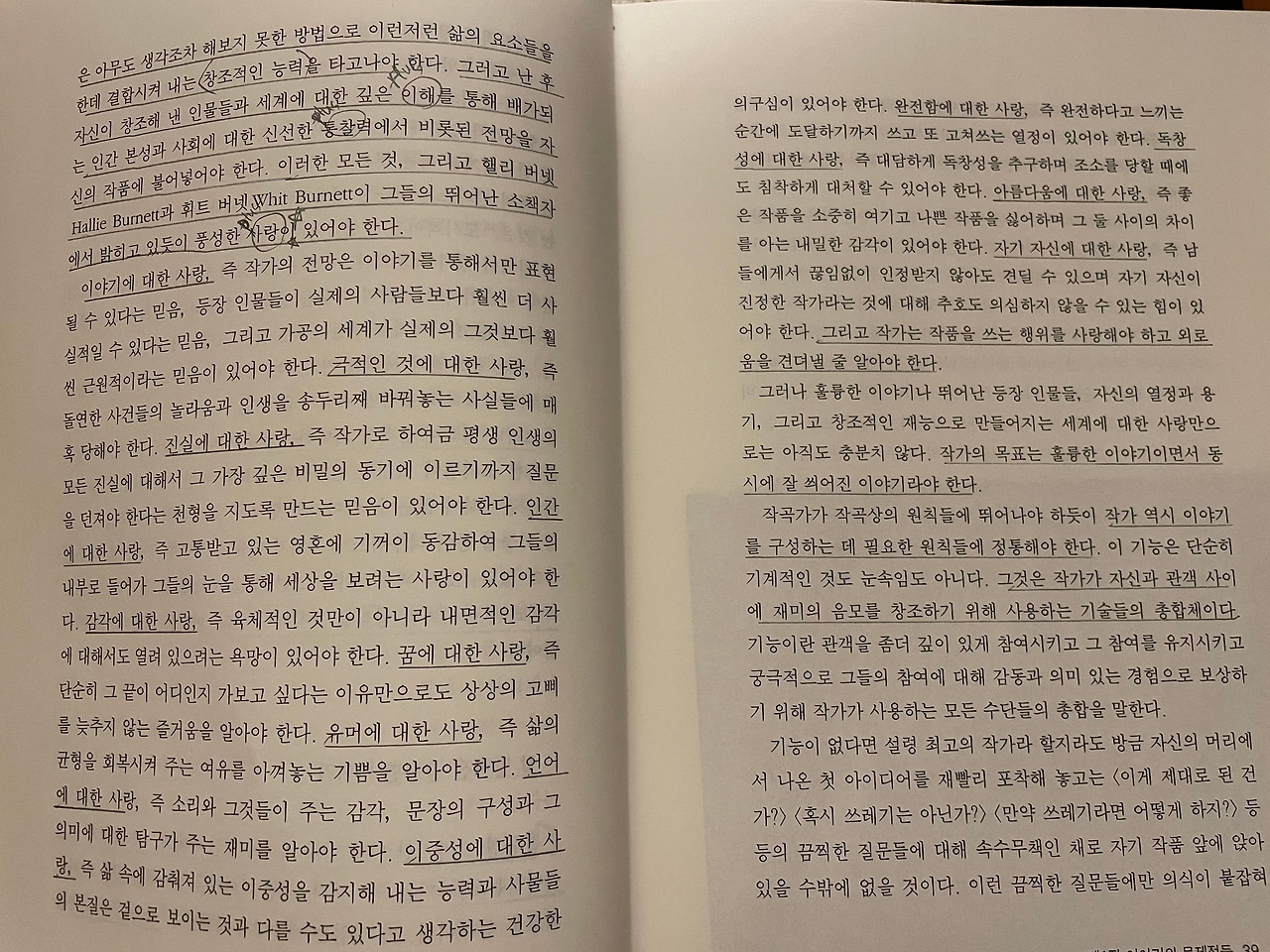 과연 이런 작가가 있을까 싶으면서도 저자가 단호하게 요구하는 수많은 사랑에 관한 작가의 자질이 나는 너무 좋았다.