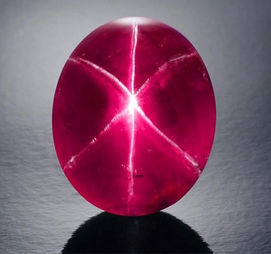 이것은 원석 내에 Rutile(금홍석) 결정이 일정한 각도로 배치되어, 6방향의 별 모양 빛이 나타나는 현상이다. 원석보다 Rutile의 굴절률이 높아 생긴 일종의 광학적 Trick이라 할 수 있다.