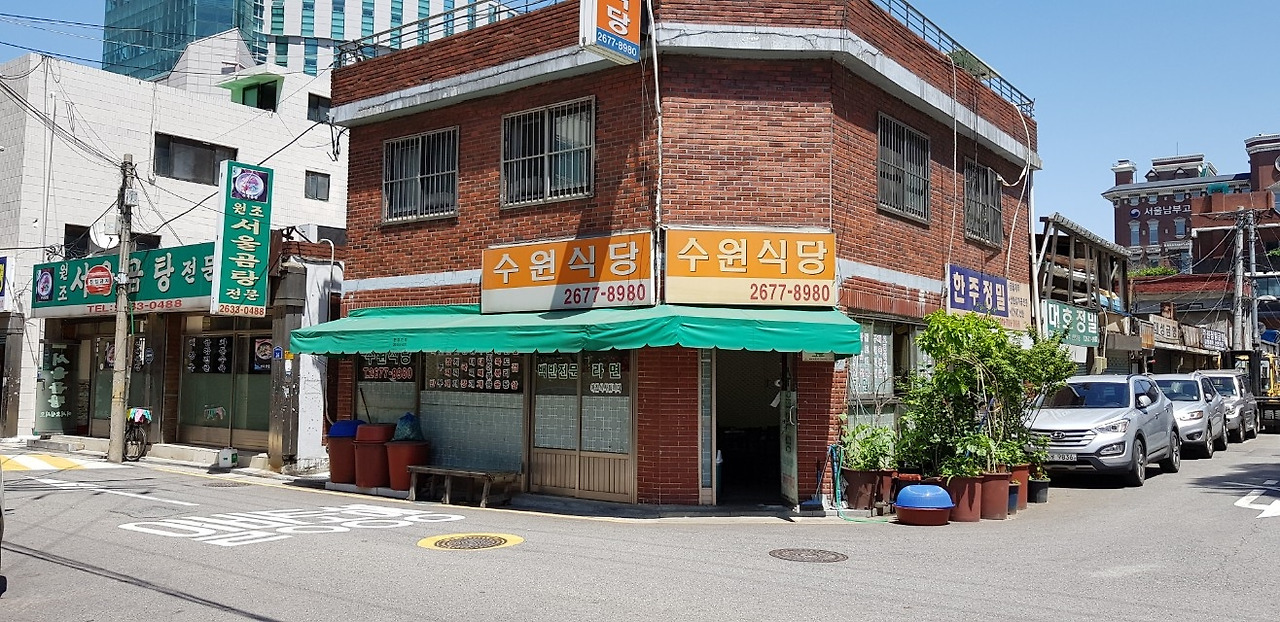 큰길에서 두 블록 올라가면 수원 식당이 있습니다. 붉은색 벽돌로 지어진 겨우10여명 남짓 앉을 수 있는 작은 식당입니다. 지금은 퇴락했지만 한때는 서울시장에 국회의원에 이름께나 날리던 사람들이 찾던 유명한 식당이었습니다.