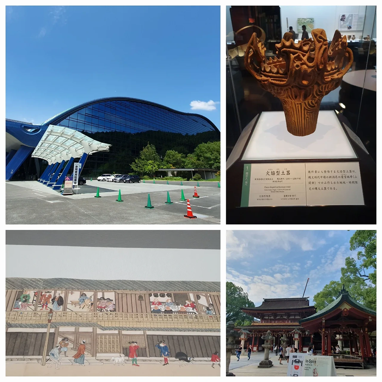 3일 차가 되니 너무 먹는 거에 집착하는 게 아닌가 죄책감으로 천만궁이 있는 다자이후를 방문했다. 여행 블로그들에선 다자이후의 천만궁과 먹거리만 소개되어 있었는데, 웬걸 규슈국립박물관이 근처에 있어서 그곳을 먼저 방문했다. 국립이 붙은 만큼 규모가 꽤 컸고 볼거리도 풍부했다.(짓느라 돈을 꽤 썼을 건데 한산했다. 위치가 너무 아쉽다.) 잘 보존된 조몬 시대의 섬세한 토기에 놀랐고, 18세기에 만들어진 아름다운 자기와 그 위에 다채로운 색깔을 구현해 당시 국력을 가늠할 수 있었다. 규슈지방은 한국과 가까워 교류의 첫 거점으로 활발했던 곳이기에 한국 사람이라면 관심을 가질만한 사료들이 있었다. 대마도는 당시 한반도와 규슈 사이에 위치해 교역의 중간지로서 역할을 했다고 한다. 대마도의 소씨 가문이 문서를 위조해 조선-일본 사이의 이득을 착복했다고 하는데, 대마도의 역사를 파보면 재밌는 게 많이 나올 듯하다. 이번 여행 땐 엔도 슈사쿠의 침묵이라는 책을 가져갔다. 15세기 카톨릭 사제들이 일본에 말씀을 전파하다가 수난을 당하는데, 배교 직전까지 신은 끝까지 침묵을 한다는 내용이다. 규슈국립박물관에 서양과의 교류 내용도 꽤 있어서 카톨릭 박해의 내용도 있을까 기대했지만 찾아볼 수 없었다. 오래된 일이지만 또 다른 침묵이 있었다. 만약 있다면 오히려 좋은 관광상품이 될 거라 생각한다. 한편 일본까지 끌려온 흑인 노예들이 묘사된 일본화가 있었다. 백인과 일본인 사이의 역사뿐만 아니라, 이 노예들의 스토리도 많이 있을 듯한데 아직 발굴하지 못한 걸까? 가령 탈출한 흑인이 일본에서 몰래 살아가는 이야기가 있다면 꽤 흥미로울 것 같다.