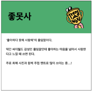 뜻 : 좋아하다 못해 사랑해의 줄임말