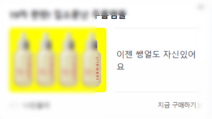 네이버 메인에 있는 광고를 예시로 가져와봤다. 느슨한 디자인에, 어투도 실제 대화하는 듯한 편안한 구어체를 사용하고 있다. "이젠 쌩얼도 자신 있어요."처럼 제품을 사용해 본 입장에서 친구에게 추천하는 듯한 현실적인 어투를 사용해 직관적으로 소비자에게 어필하고 있는 것이다.