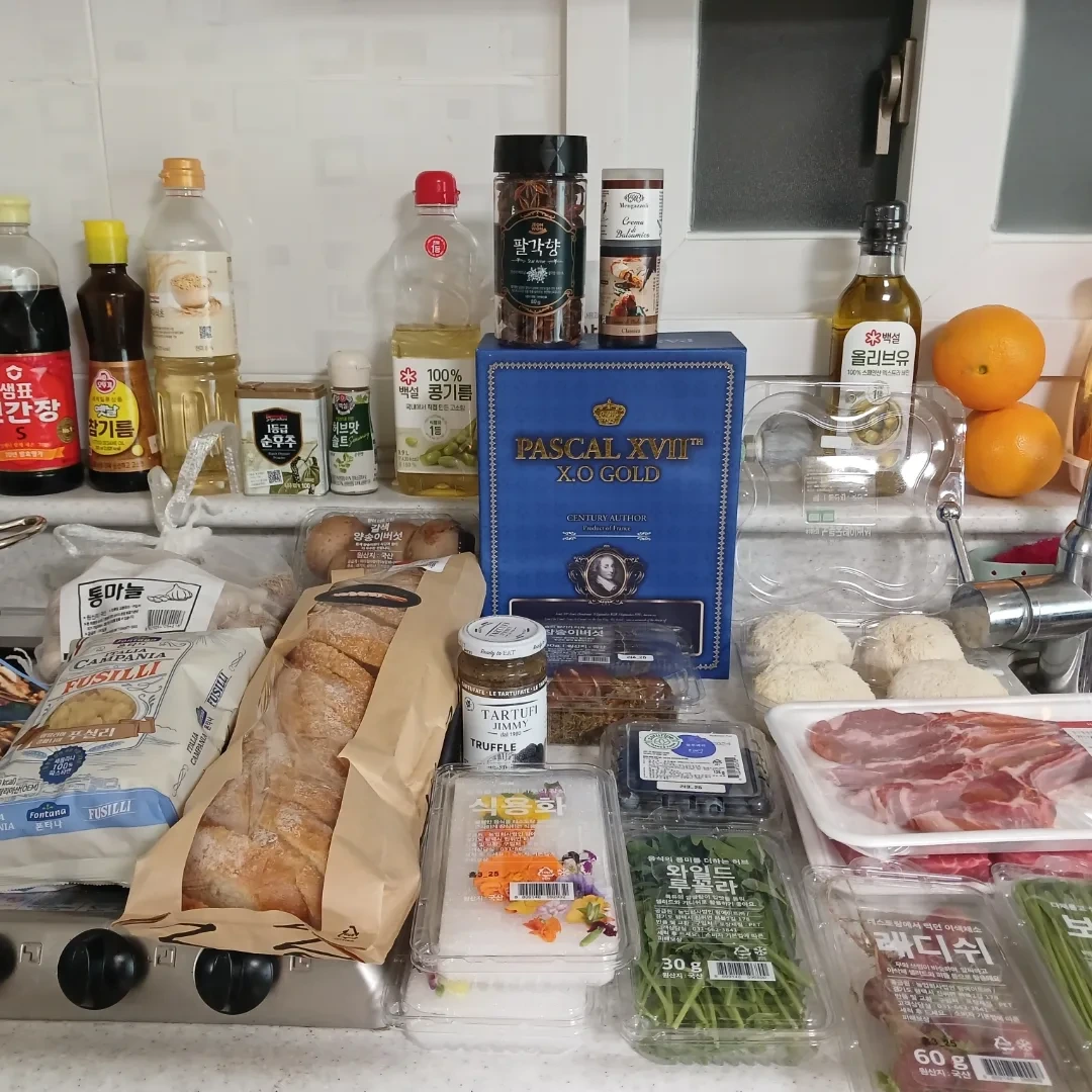 여름 송로버섯 페이스트, 갈색 양송이, 칠곡 마늘, 꼬냑, 취나물, 푸실리