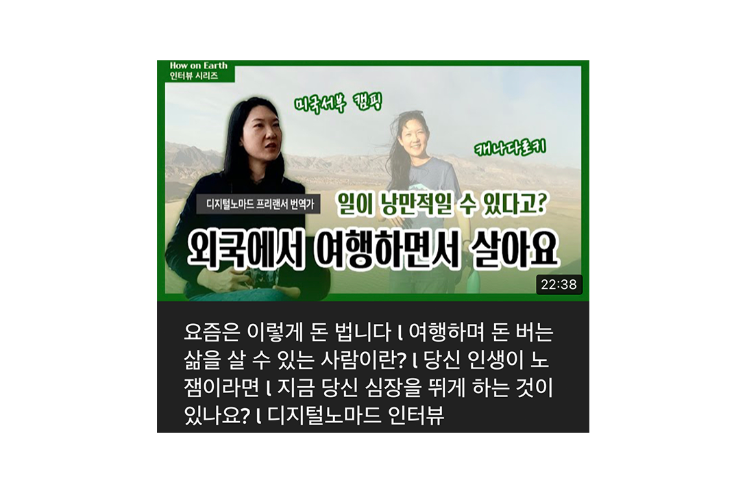 프리랜서 번역가로 꽤 오래 자유로운 워크 라이프를 즐겨오고 있는 김세은 번역가. 지금은 캐나다 캘거리에 살고 있습니다. 그러나 김세은 번역가도 처음부터 프리한 사회생활을 시작한 건 아니에요. 대학을 졸업하고 취직한 첫 직장은 학교였어요. 정해진 틀 속에서 상사의 지시대로만 움직이면 되는 곳에서 누군가는 분명 편안한 안정감을 느끼겠지만, 김세은 번역가는 오히려 시간을 자유롭게 쓰고 싶다, 장소에 구애받고 싶지 않다는 마음을 품습니다. 그리고 그 마음에 집중하게 돼요. 나의 재능은 무엇일까 탐구하며, 디지털 노매드로 살아갈 업무 시스템을 그려 나가기 시작합니다.