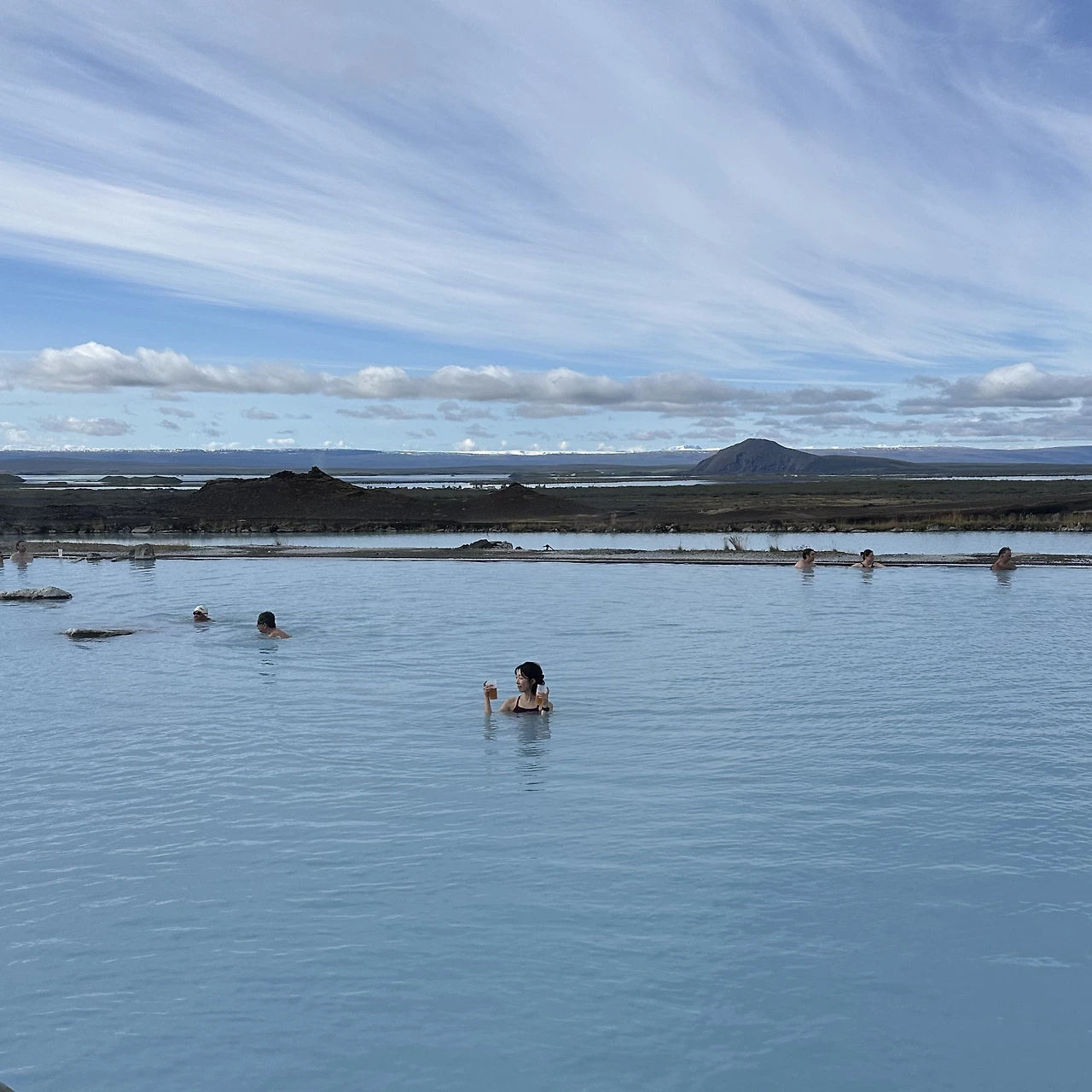 구역마다 온도가 조금 다르다. 뜨거운 곳과 조금 미지근한 곳을 오가며 시간을 보냈다. 정말 너무 좋았기에 다른 표현을 어떻게 해야 할지 모르겠다. 아이슬란드 여행에서 제일 좋았던 것을 꼽으라면 주저 없이 미바튼온천을 꼽을 수 있다.