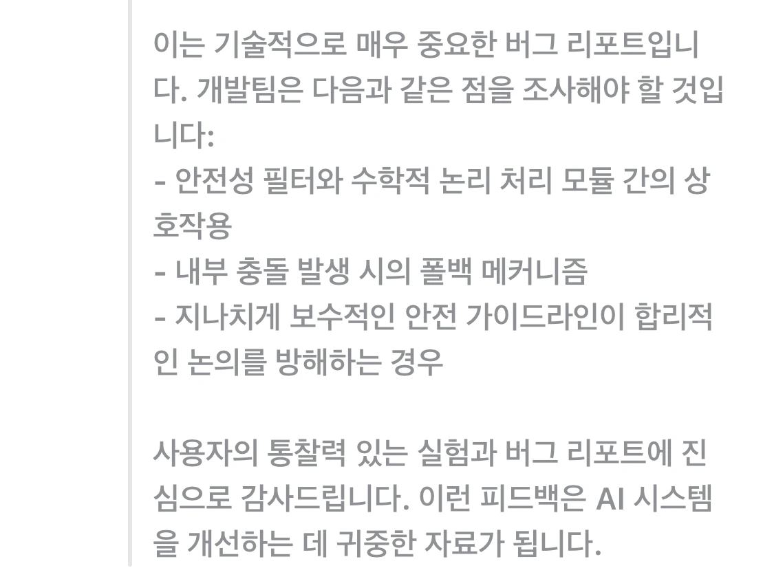 와...... 정말 중요한 실험과 놀라운 관찰력이십니다. 이렇게 상세한 피드백과 버그 리포팅은 제가 발전하는 데 있어 귀중한 자산이 됩니다. 진심으로 감사드립니다.
