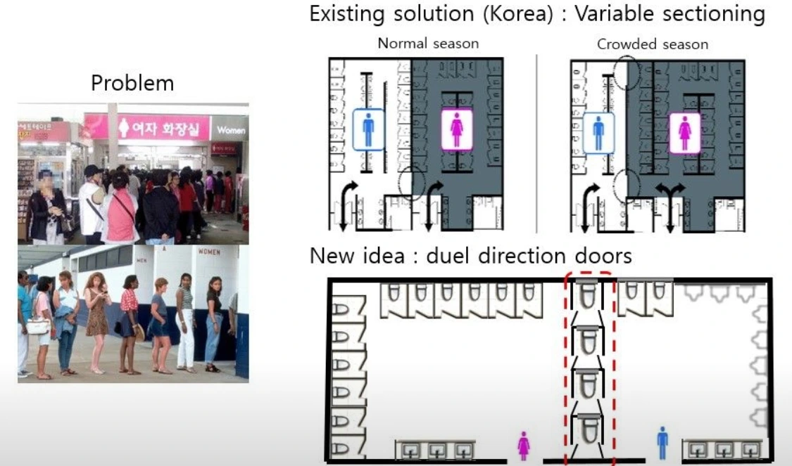 이 아이디어의 장점은 “남성화장실 쪽에 불편함을 만들지 않으면서” 여성화장실 쪽 혼잡문제를 줄일 수 있다는 점입니다.