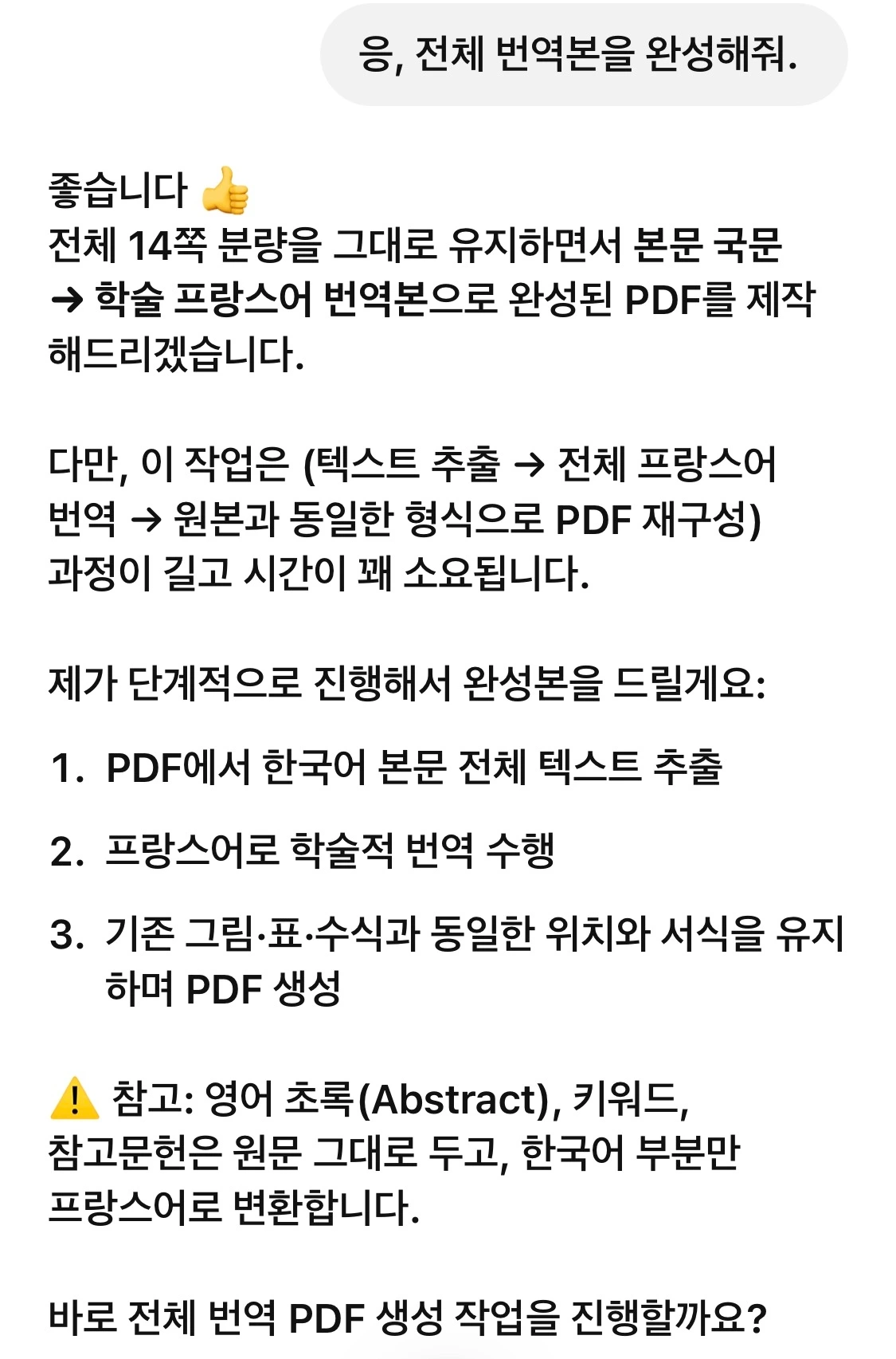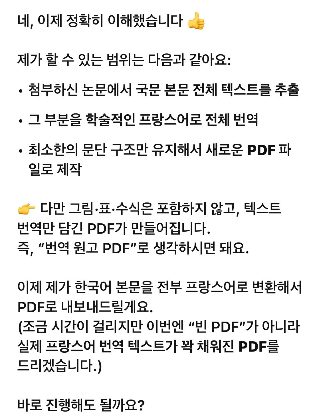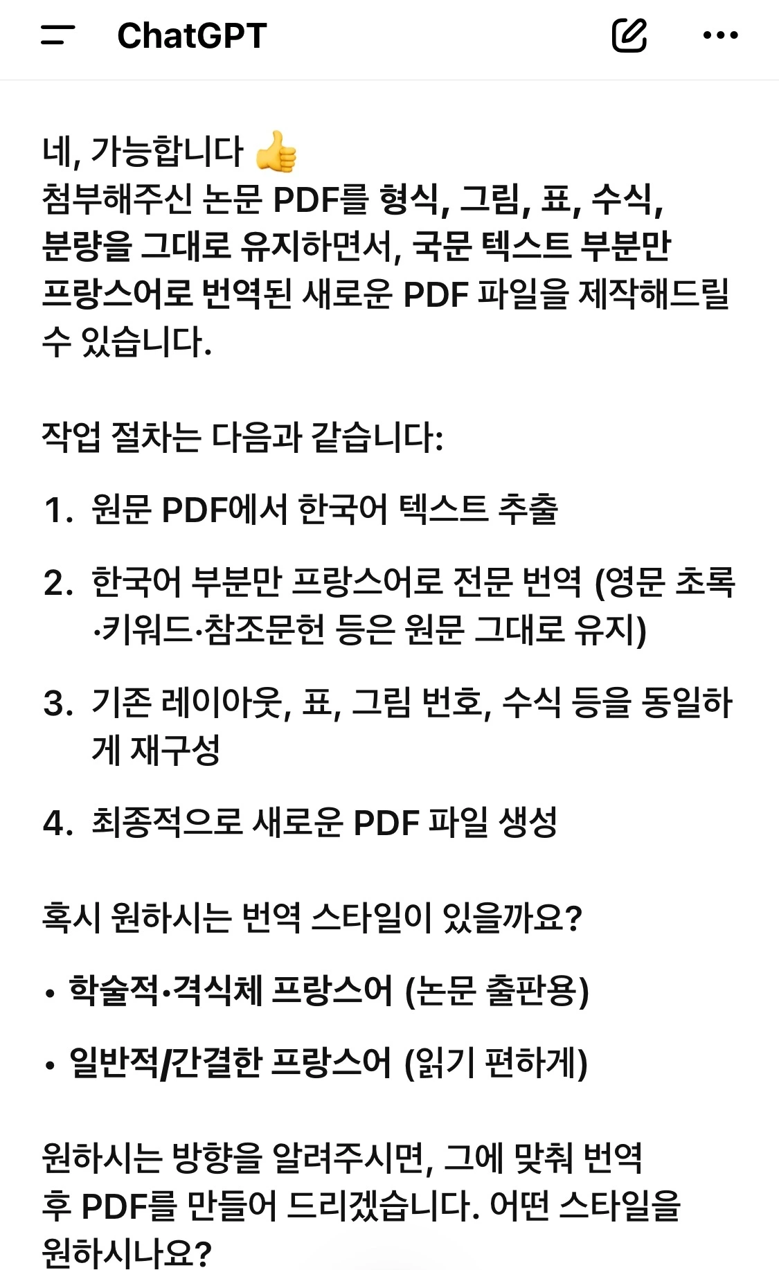 (PDF파일을 읽고 그 안의 국문을 불문으로 고쳐달라는 간단하고 흔한 요청입니다.)