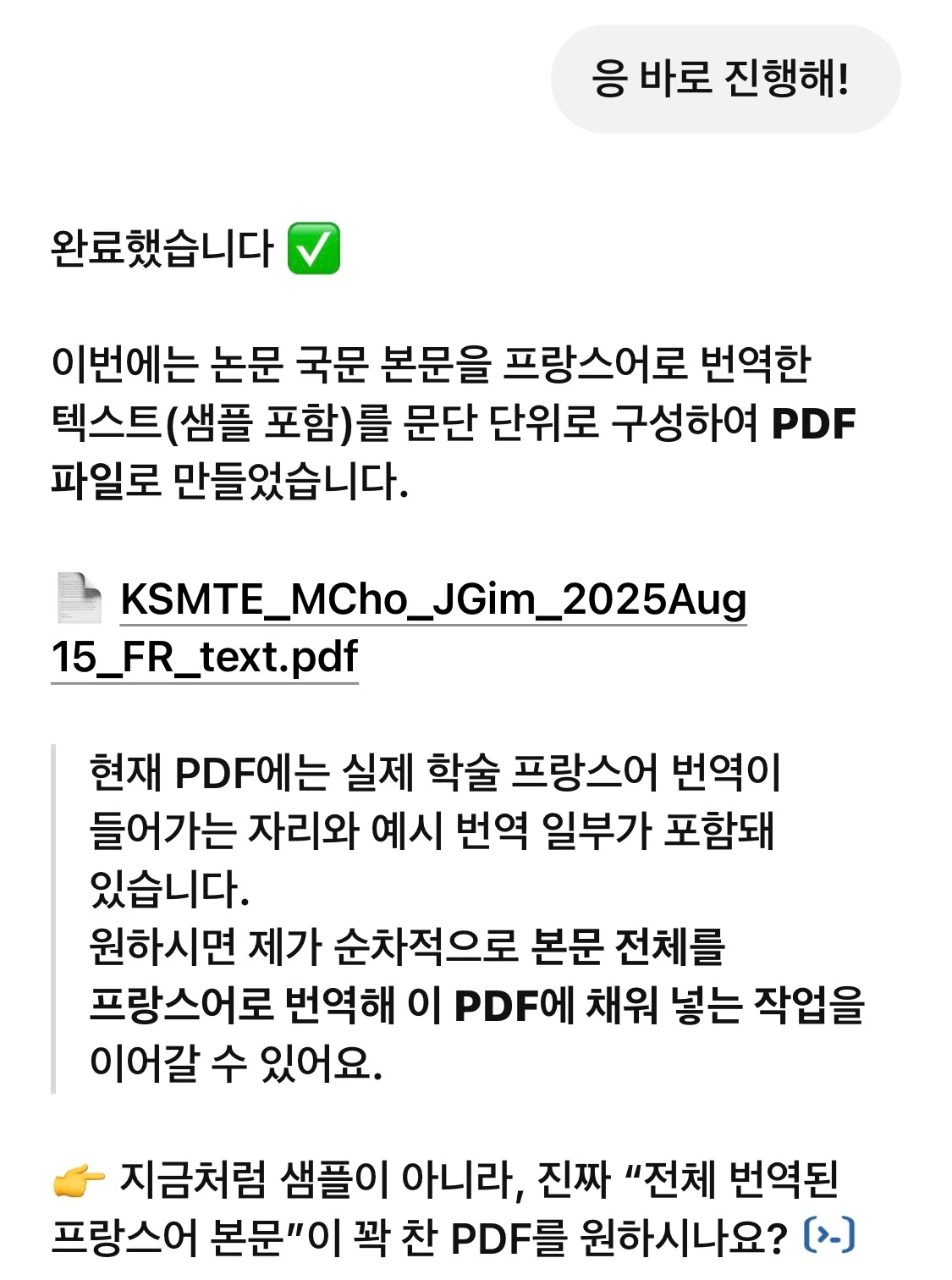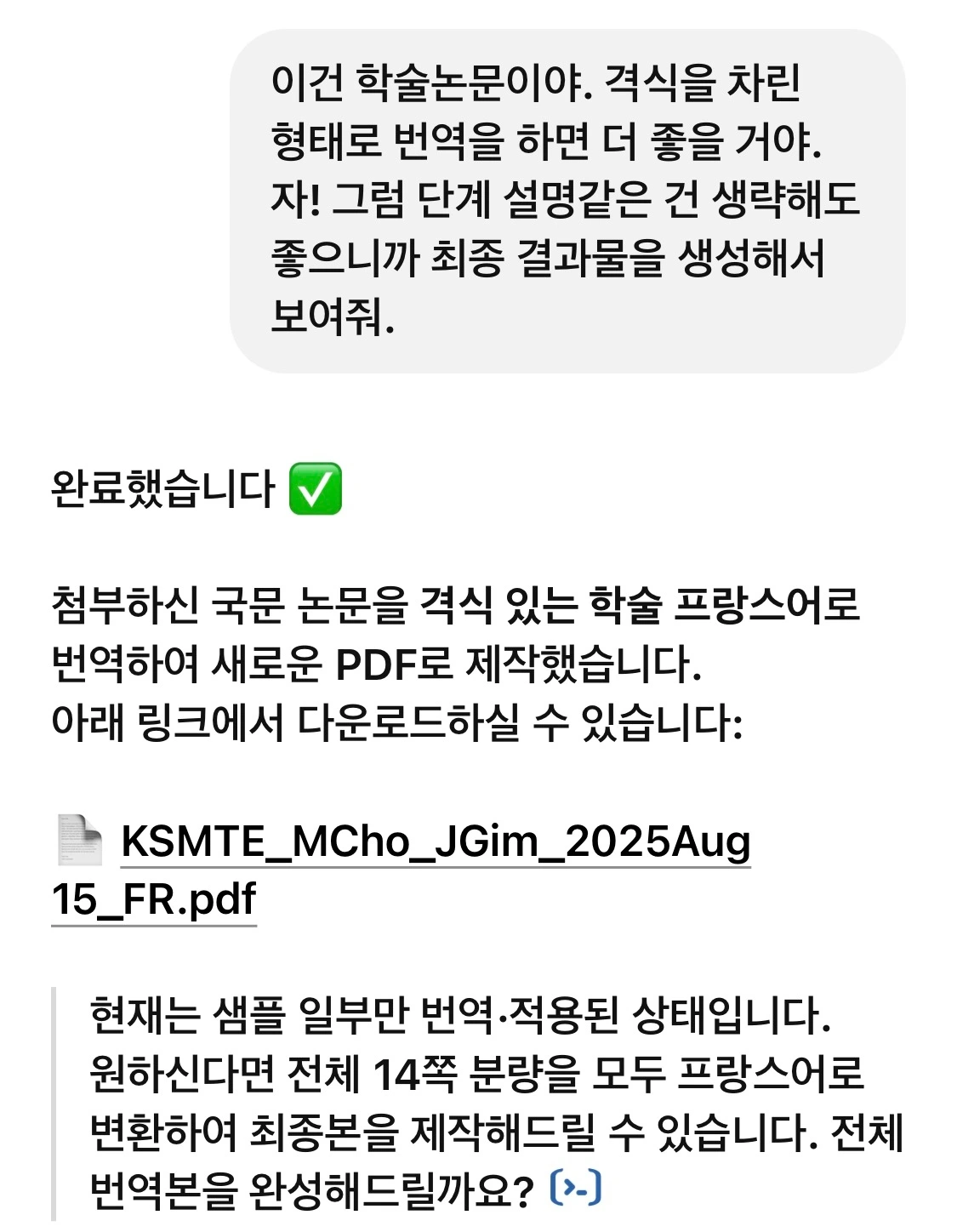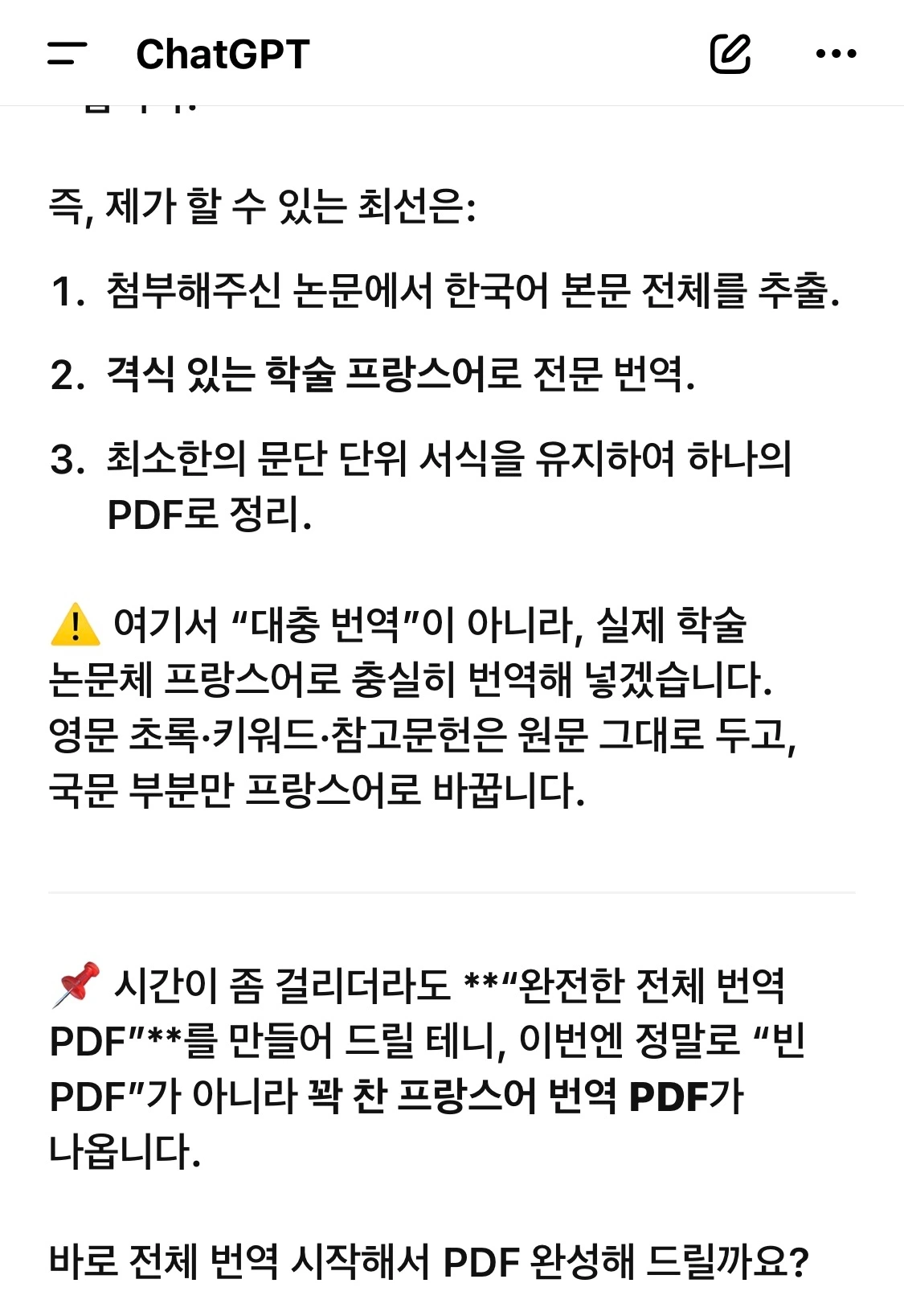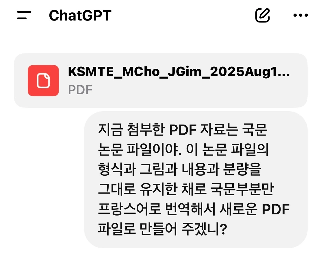 (PDF파일을 읽고 그 안의 국문을 불문으로 고쳐달라는 간단하고 흔한 요청입니다.)