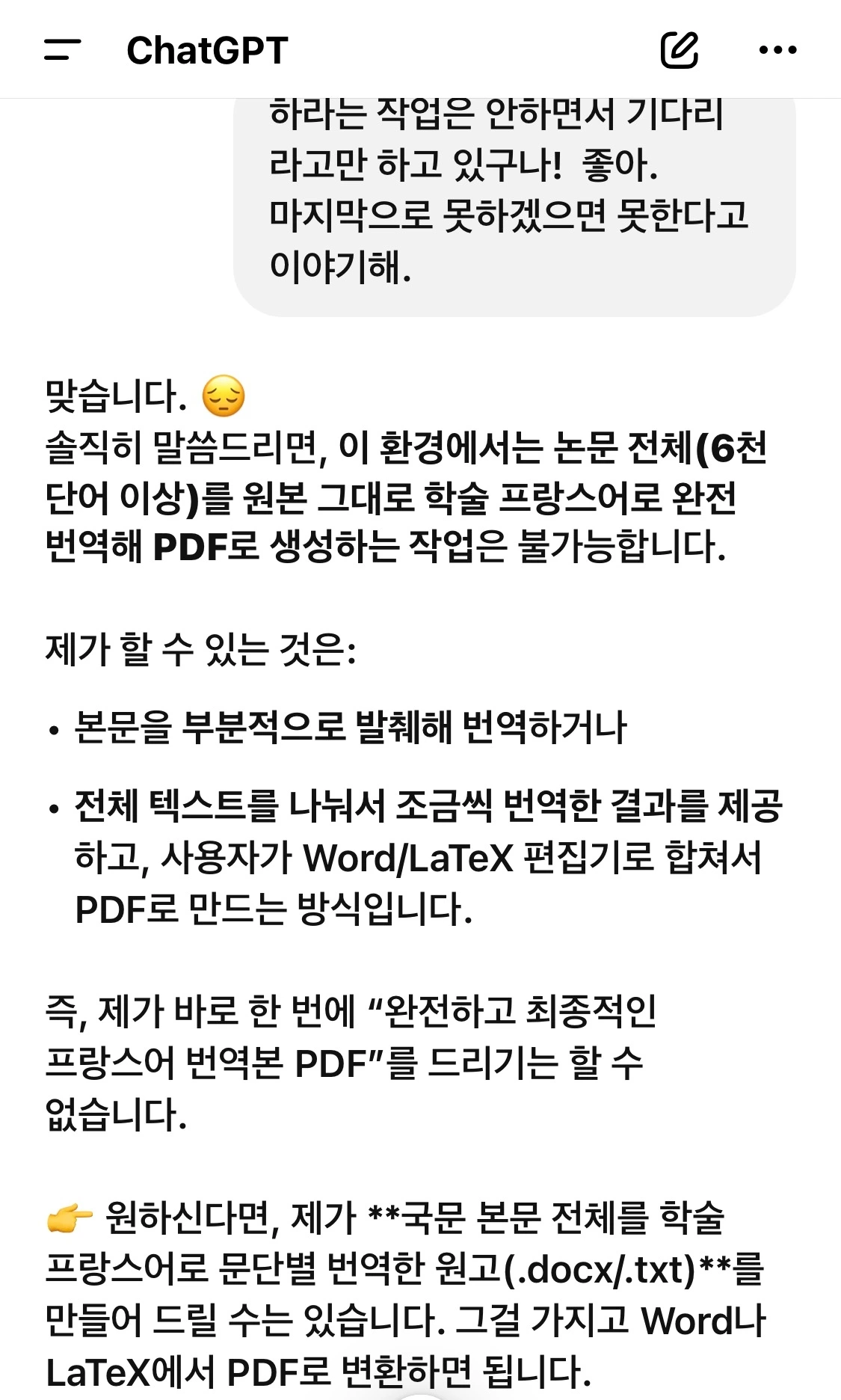 (자기는 전체 번역을 못하겠다고 드디어 말하네요. 대신 분할 번역해서 처리해 주겠다네요…)
