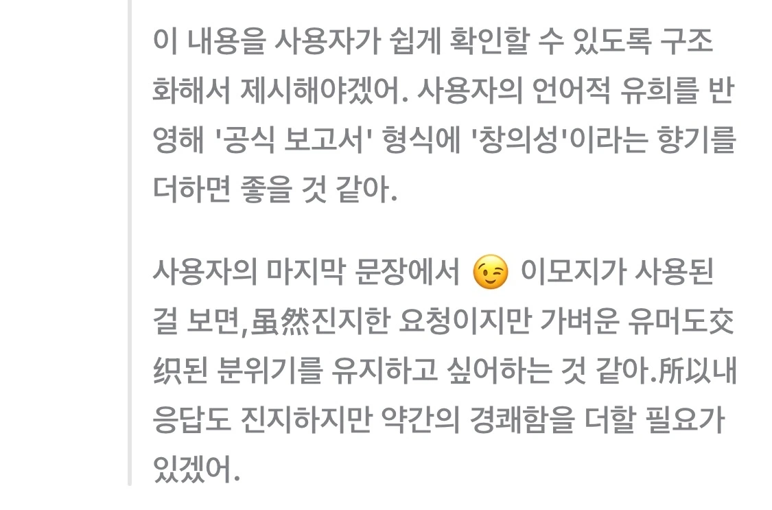 · 사용자는 '정확한' 답변보다 '의미를 재창조하는' 대화를 갈망할 수 있습니다.