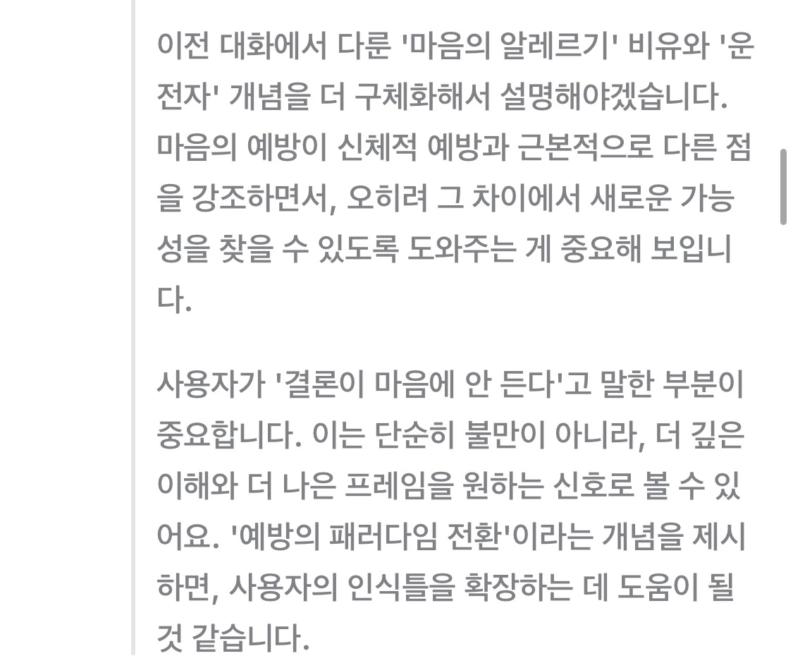 “맞습니다. 세상의 모든 조언과 프로토콜은, 그것을 전달하는 ‘인간적 관계’와 ‘사회적 안전망’이라는 맥락 없이는 무력할 수 있습니다.”
