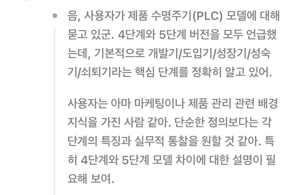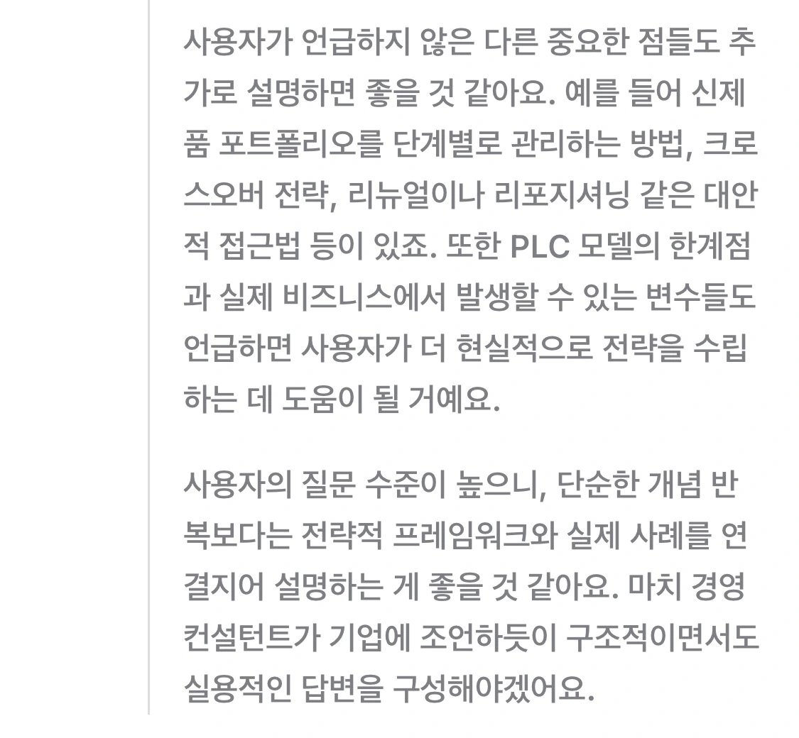 (사용자가 하라는 질문을 안 하고 썰만 풀어놓으니, 조금이라도 사용자가 놓치고 있다고 생각되는 부분을 “강조”해서 설명해 주네요.. )