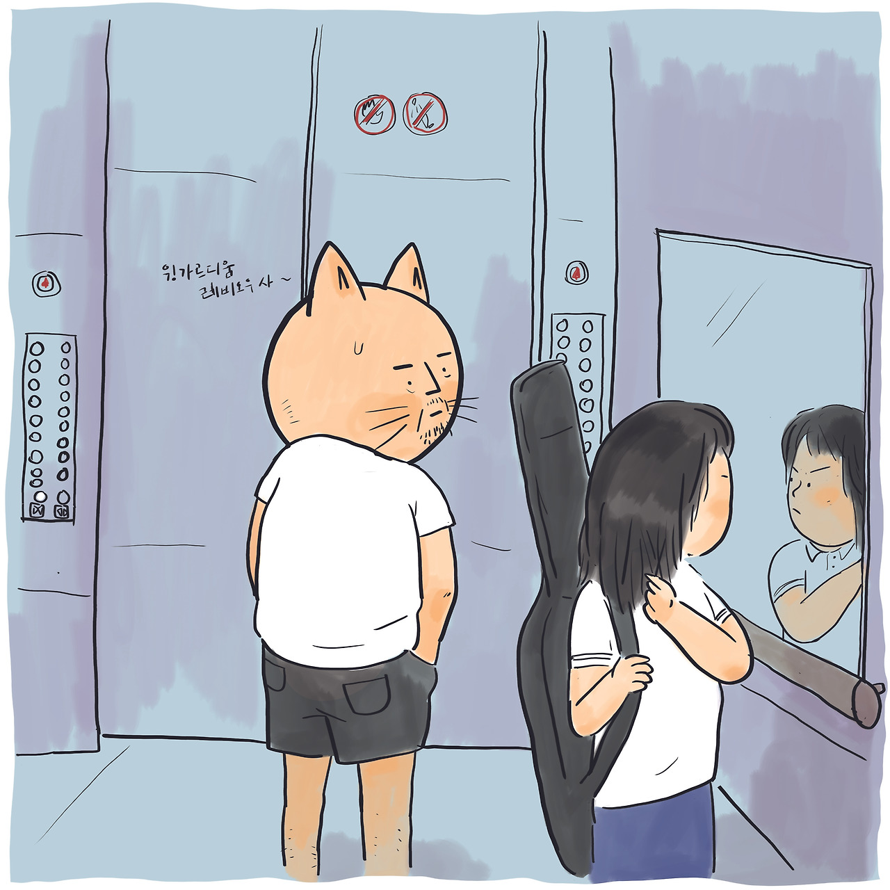 겨우겨우 재촉해 엘리베이터에 태웠더니,