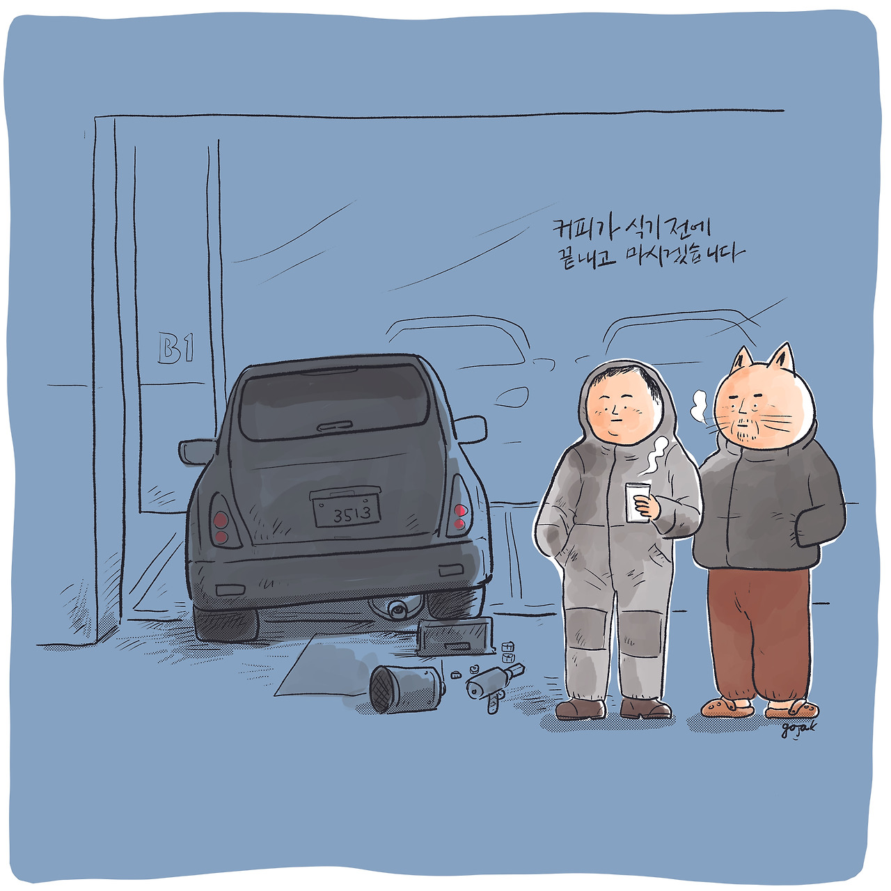"커피가 식기 전에 끝내고 나가서 마시겠습니다"