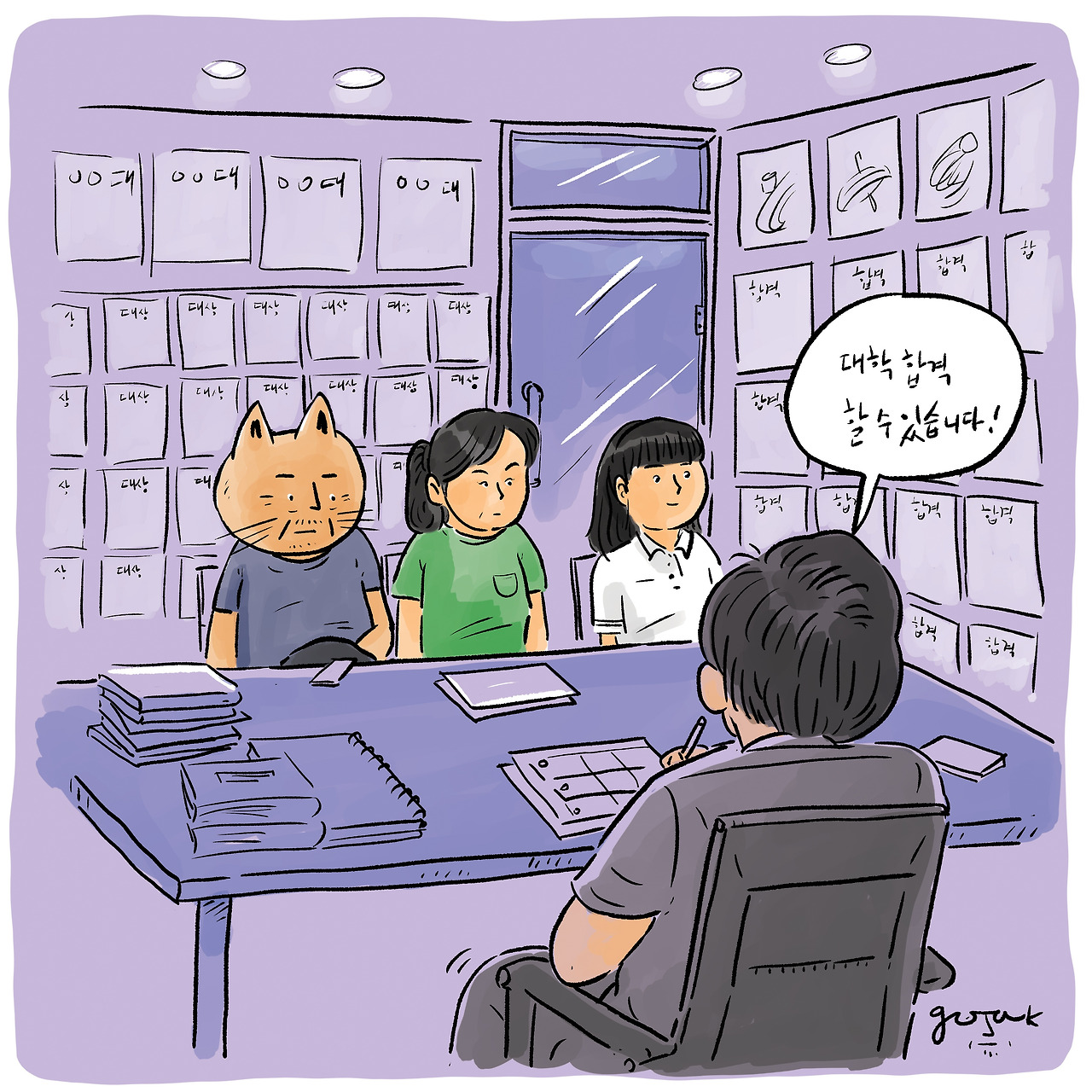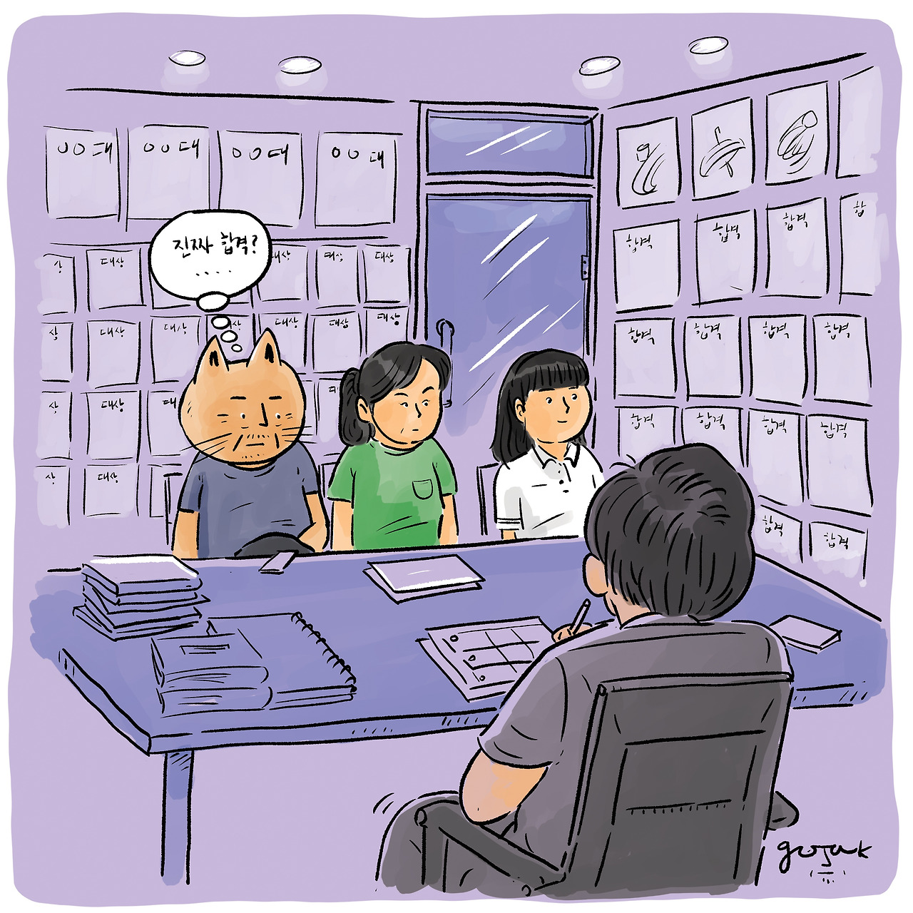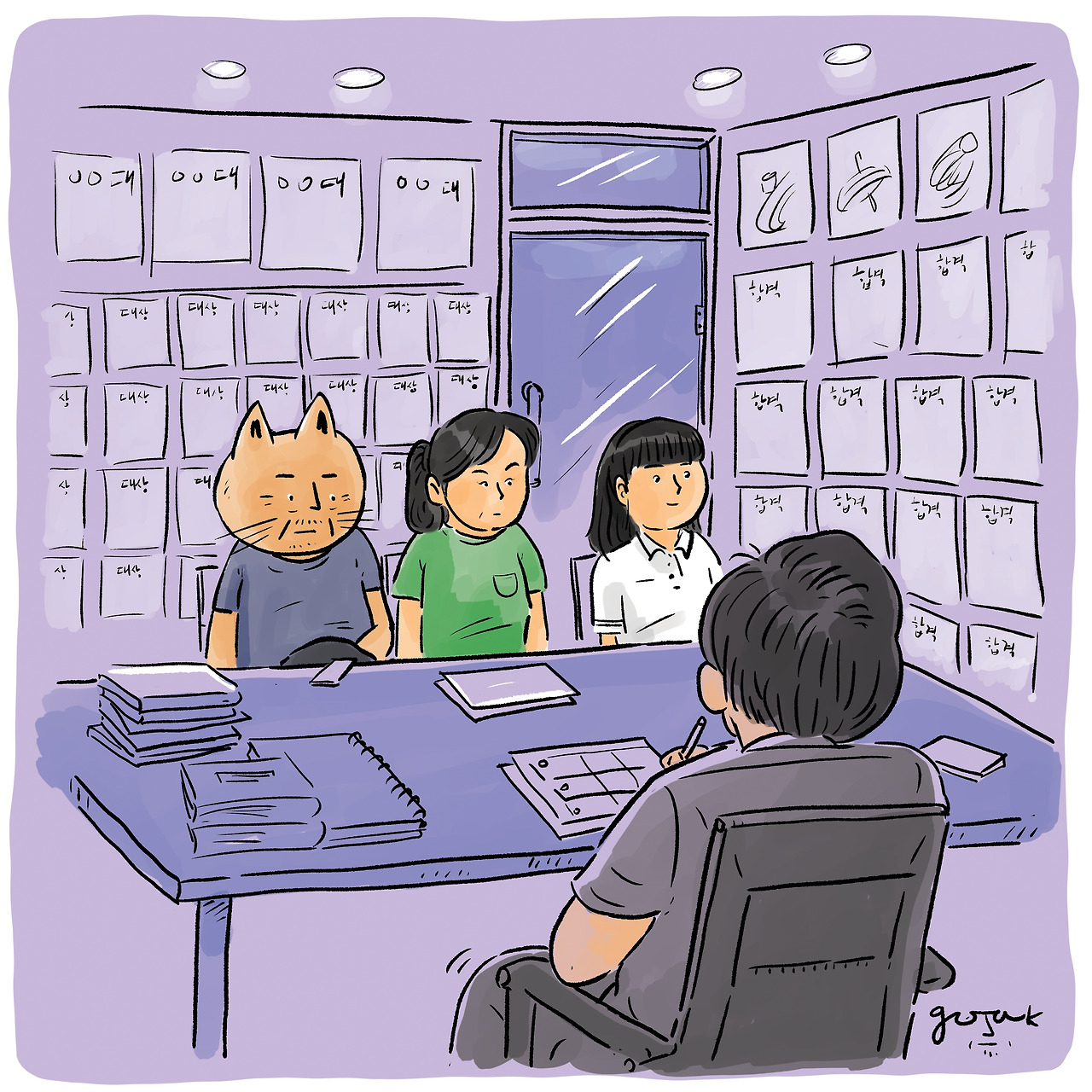 속으로 입시생 부모가 무슨 일을 했었는지를 먼저 물어보고