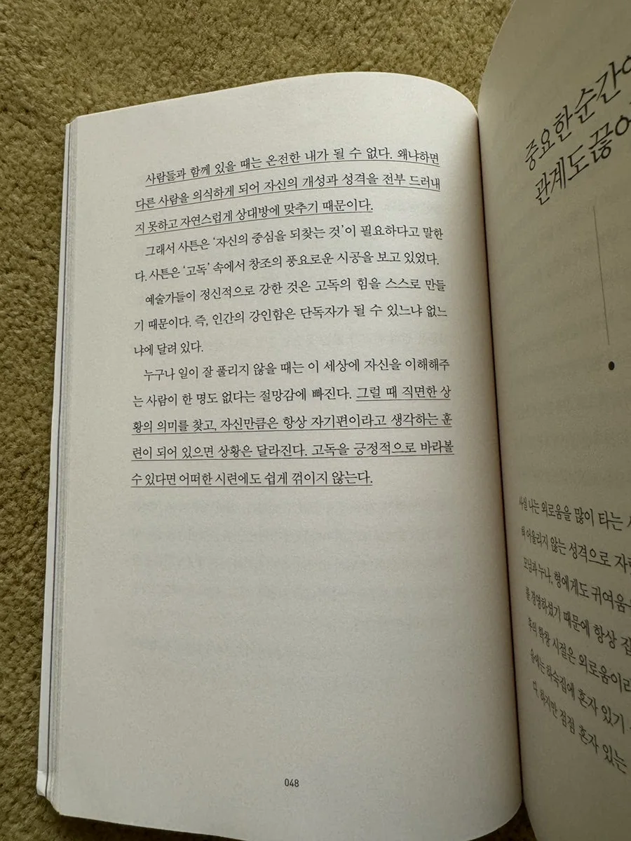 자리를 잡고 앉아 읽기 시작했다. 고독에 관한 내용이었다.