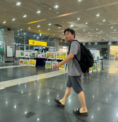일단 샤워를 해야지 하는 순간 공항에 내렸고 캐리어가 엉망이 되어 지퍼가 터지고 난리라고 했다.