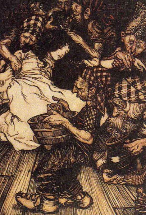 해가 질 무렵 집으로 돌아왔을 때, 그들은 자신들의 침대에서 자고 있는 한 여자를 발견했다. 여자라니. 그들은 커다란 충격을 받았다. 마치 외계인이라도 만난 것 같은 놀라움이었다. 그들은 숨을 죽이고 여자가 잠에서 깨어날 때까지 곁에서 기다렸다. 마침내 잠에서 깨어난 여자는 그들을 보고 환하게 미소를 지었다. 그들은 황홀해져서 정신을 차릴 수가 없었다. 따듯하고 부드러운 여성성이 그들의 거칠어진 영혼을 어루만져 주었다. 여자는 눈물이 날 정도로 예뻤다. 세상에서 가장 아름다웠다. 그것은 상대적일 수 없는 절대적인 아름다움이었다. 모두가 여자를 환영했다. 그렇게 여자는 그들과 함께 살게 되었다.