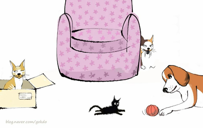꼬꼬가 책장 꼭대기에 앉아 천정에 붙어있는 크고 까만 거미를 노려보며 대꾸했다.