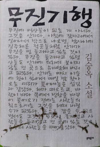 [서울 1964년 겨울]은 개인적으로 가장 좋아하는 소설 중 하나다. 왜 이 소설이 김승옥의 다른 소설 [무진기행]에 비해 인기나 인지도가 떨어지는지 모를 일이다. (위의 김승옥 소설 모음집 제목도 [무진기행]이 아닌가.) 내가 보기에 [무진기행]은 짐짓 잰 체하는 느낌에 허언되고도 지루했는데 말이다. 물론 '잰 채'하는 느낌은 [서울 1964년 겨울]에서도 마찬가지이기는 하다. 그러나 차라리 대놓고 잰 채를 하니 오히려 좋았던 것이다. 처음 이 소설을 읽었을 때 우선은 그 세련됨 때문에 놀랐다. 심리 표현이나 문장들이 너무 세련되게 다듬어져 있어서 자칫 글 전체가 그저 문학적 수사처럼 보일 지경이었다. 말하자면 지나치게 '문학적'이거나 혹은 '작위적'이라고 할 만하다. 그런데 나는 그 문학적 작위성이 마음에 들었다.